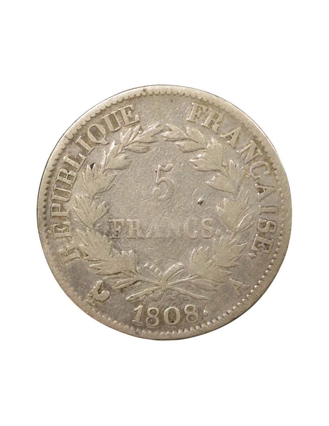 France Napoléon I - 5 Francs Argent, Tête laurée, République - 1808 A Paris