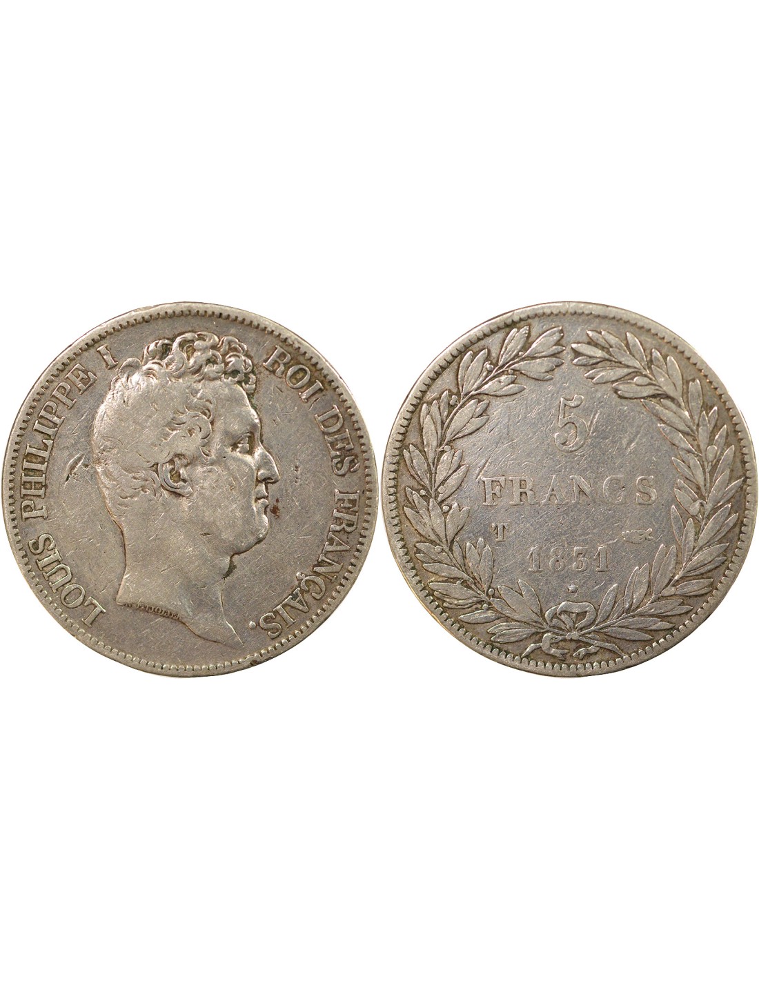 France Louis Philippe I - 5 Francs Argent, Tiolier, Tr. en Creux - 1831 T Nantes