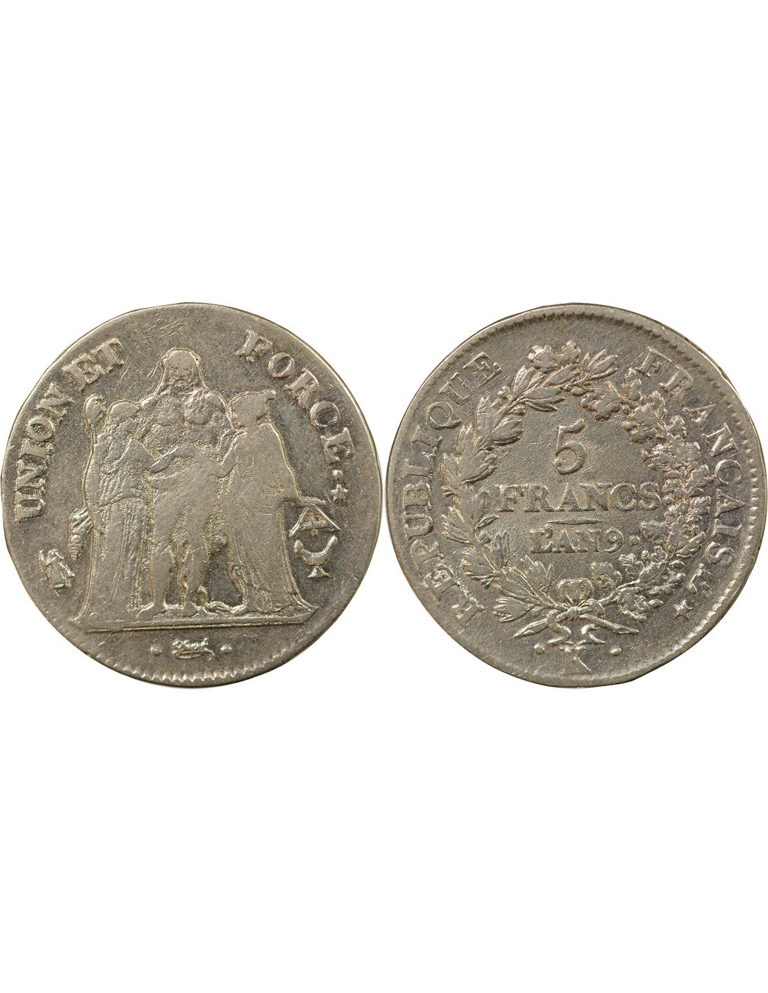 Union & Force 5 francs Argent An 9 K Bordeaux