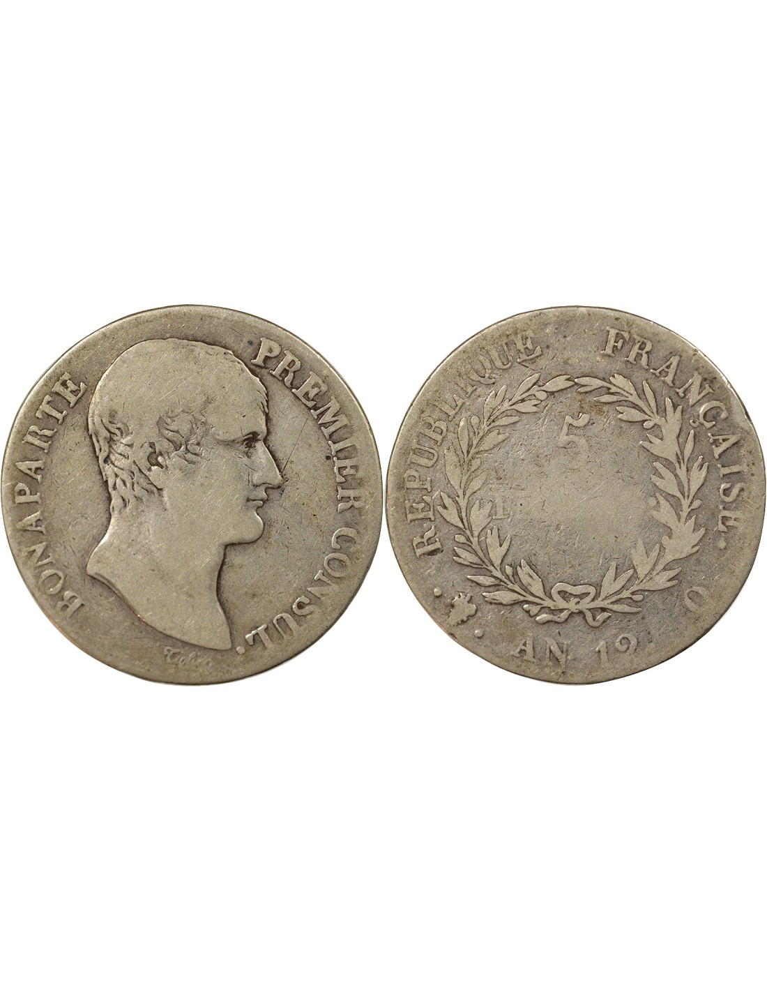 France Bonaparte Ier Consul - 5 Francs Argent - An 12 Q Perpignan