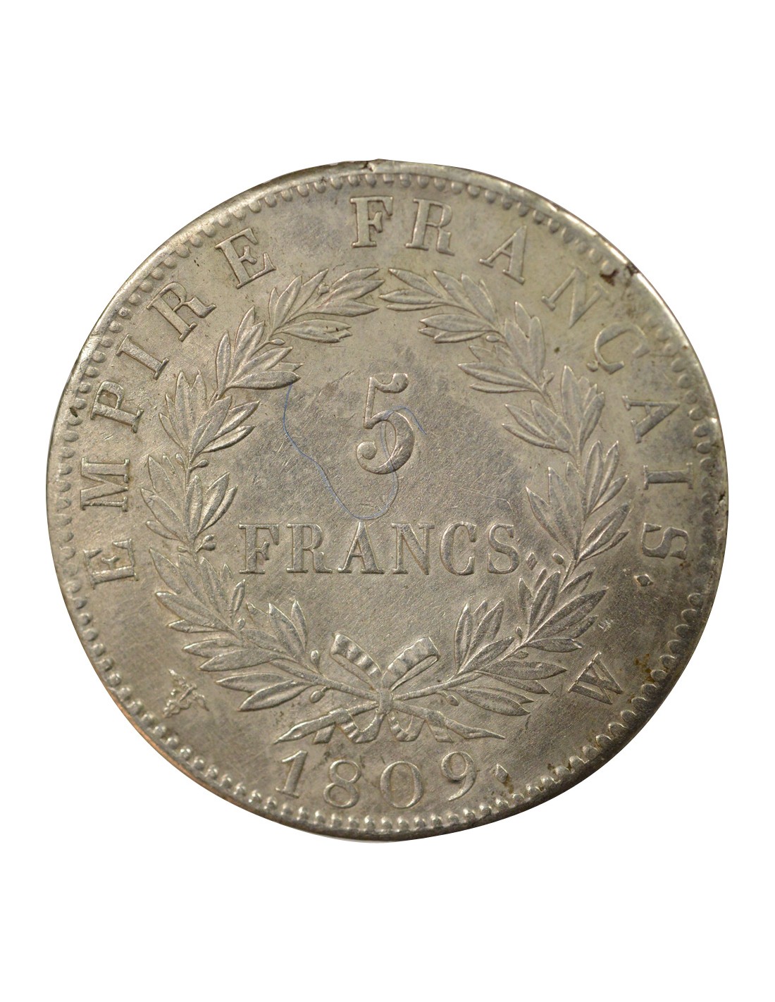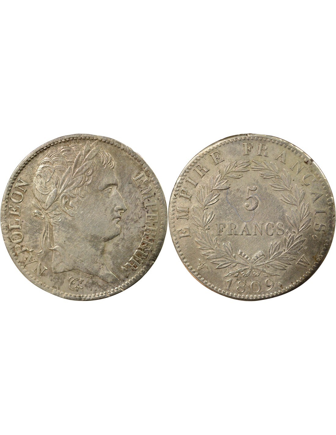 France Napoléon I - 5 Francs Argent, Empire - 1809 W Lille
