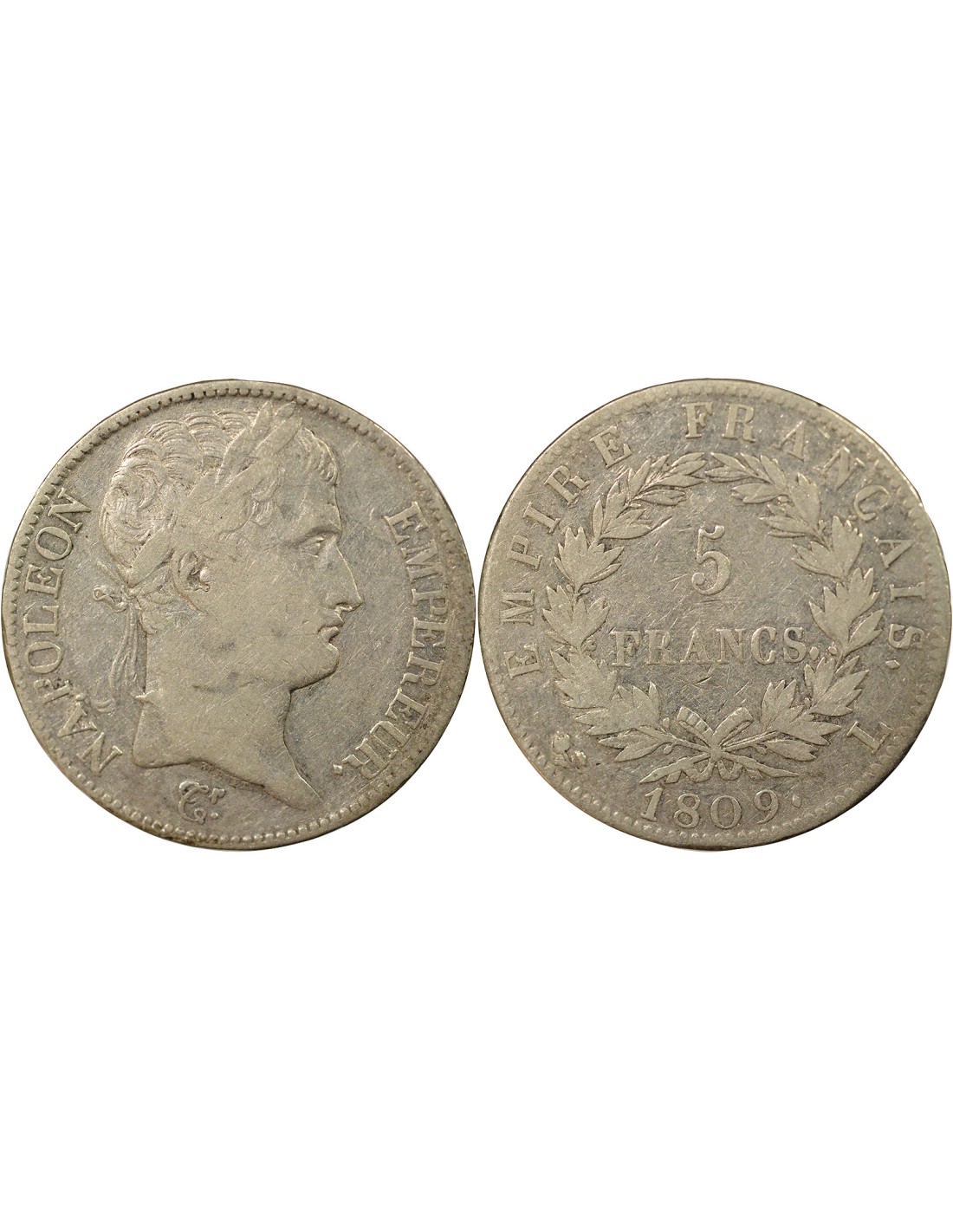 France Napoléon I - 5 Francs Argent, Empire - 1809 L Bayonne