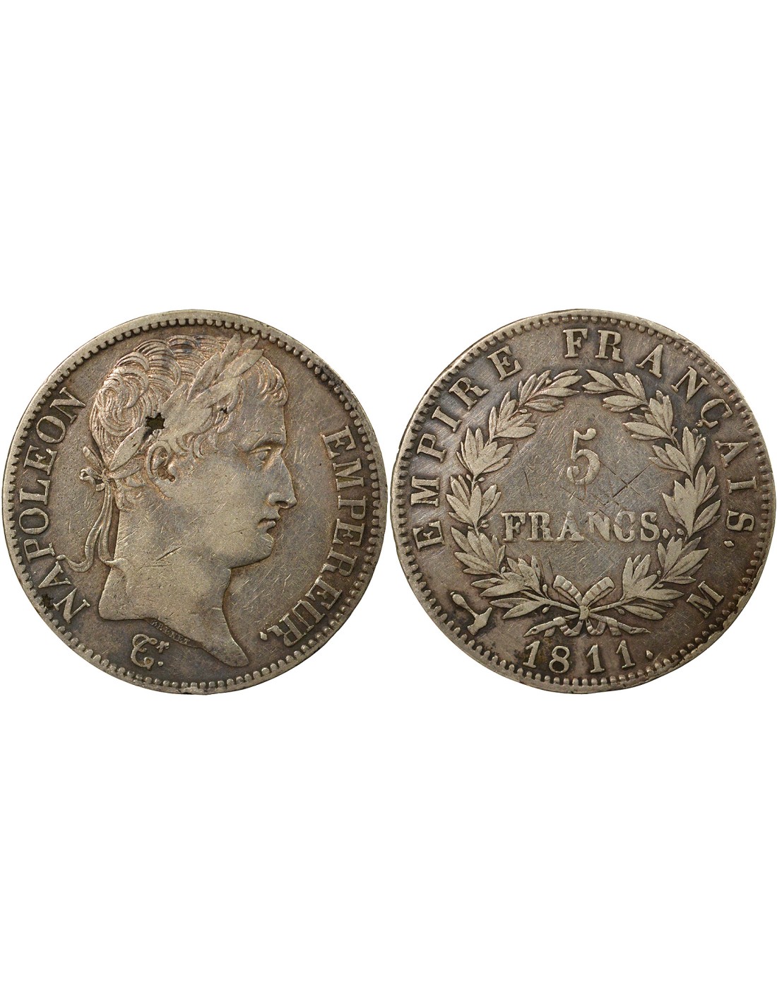 France Napoléon I - 5 Francs Argent, Empire - 1811 M Toulouse