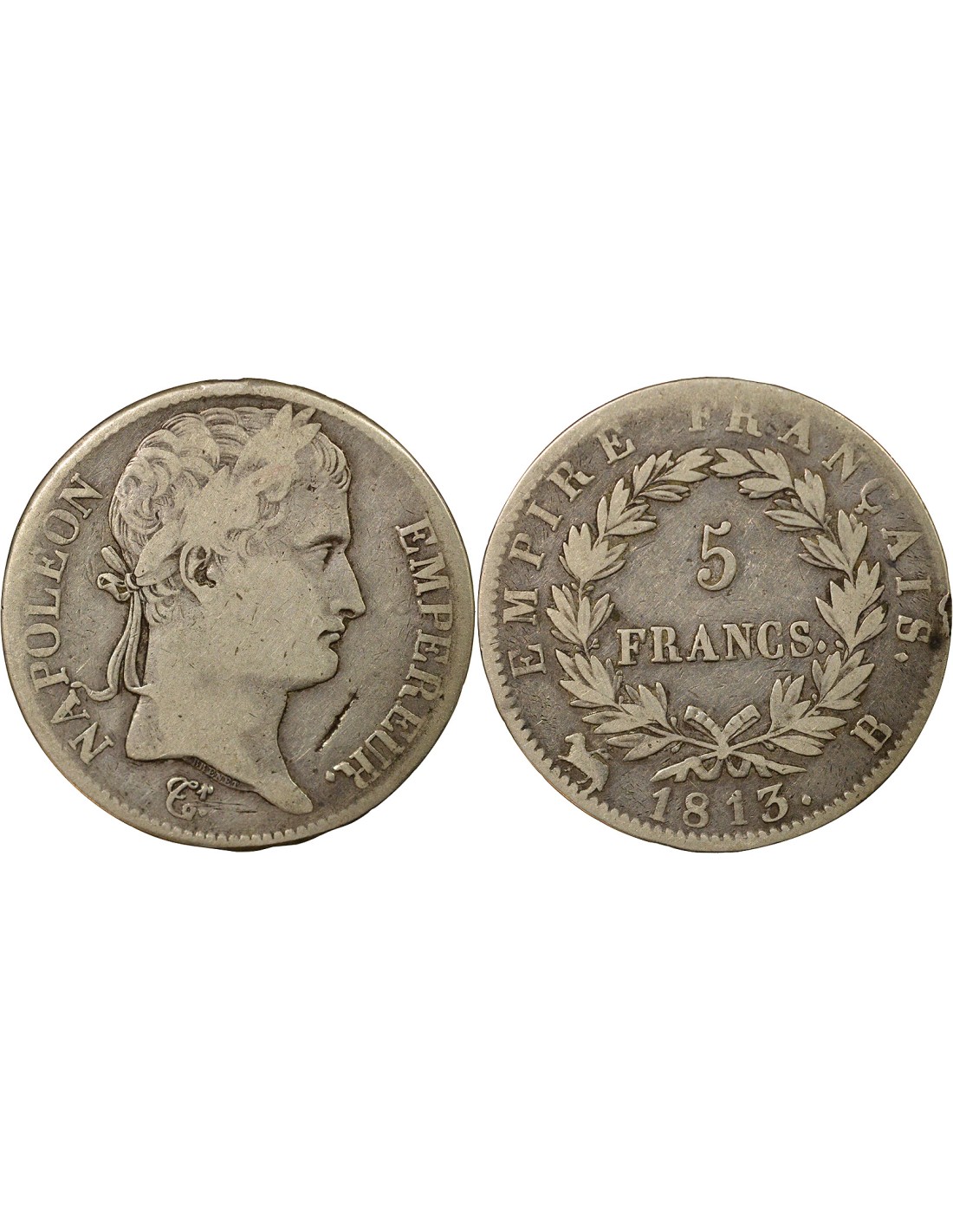 France Napoléon I - 5 Francs Argent, Empire - 1813 B Rouen