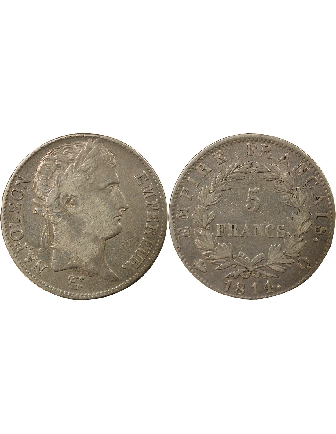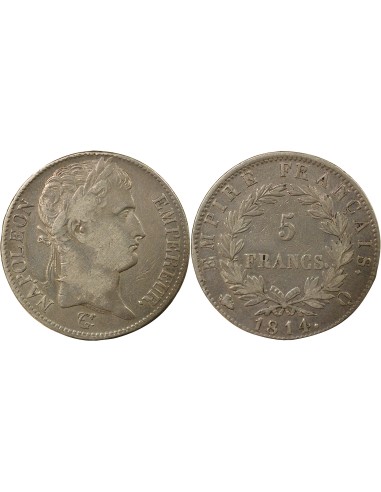 France Napoléon I - 5 Francs Argent, Empire - 1814 Q Perpignan