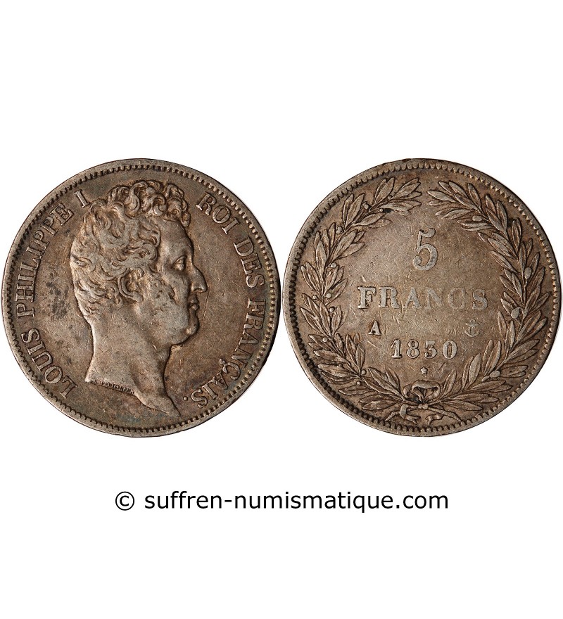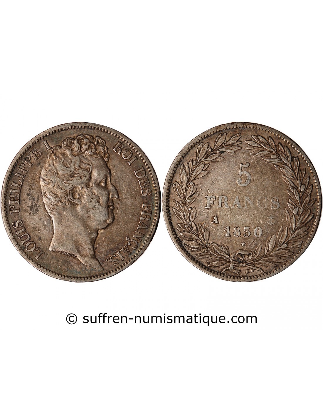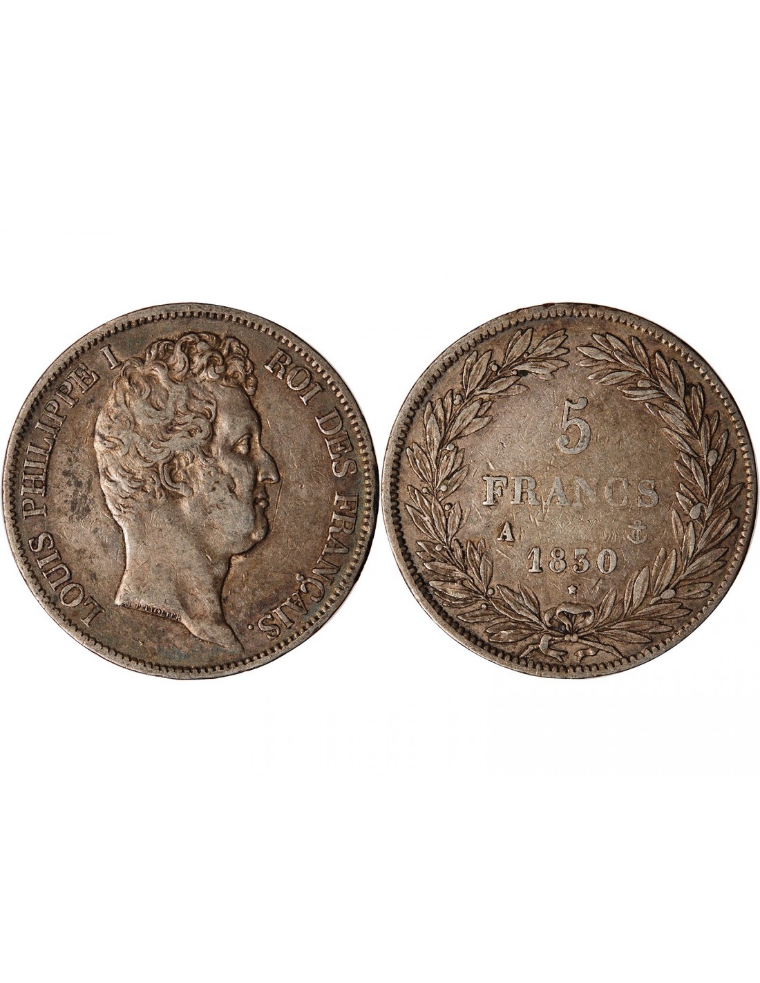 "France Louis Philippe Ier - 5 Francs Argent, Tiolier, Tr. Creux - 1830 A Paris