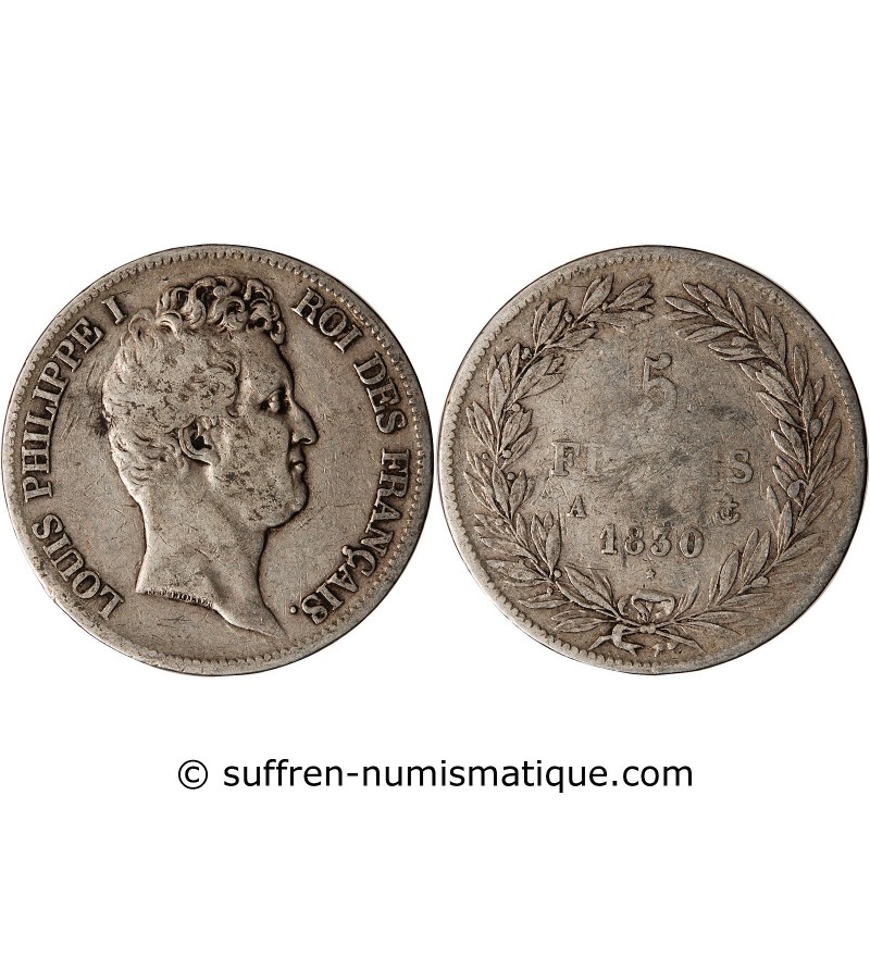 "France Louis Philippe Ier - 5 Francs Argent 1830 A Paris "Type Tiolier, Tr Creux"