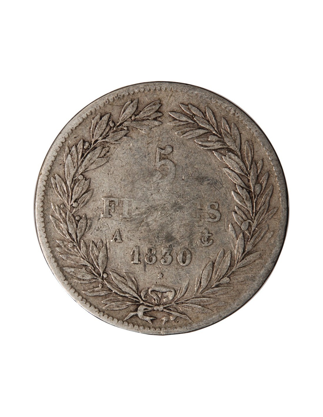 LOUIS PHILIPPE - 5 FRANCS ARGENT 1830 A PARIS "Type Tiolier, Tr creux"