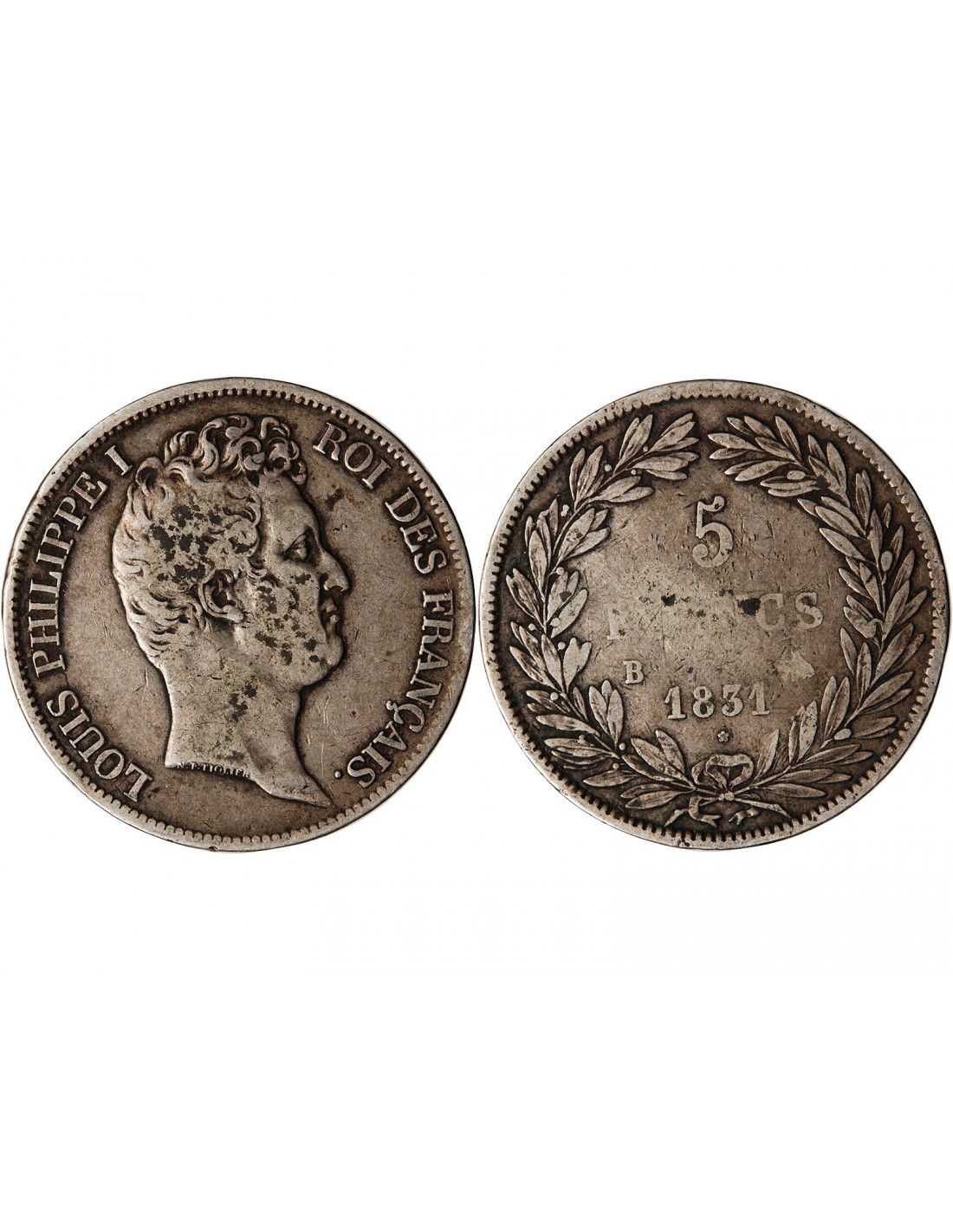 "France Louis Philippe Ier - 5 Francs Argent, Tiolier, Tr. en Creux - 1831 B Rouen