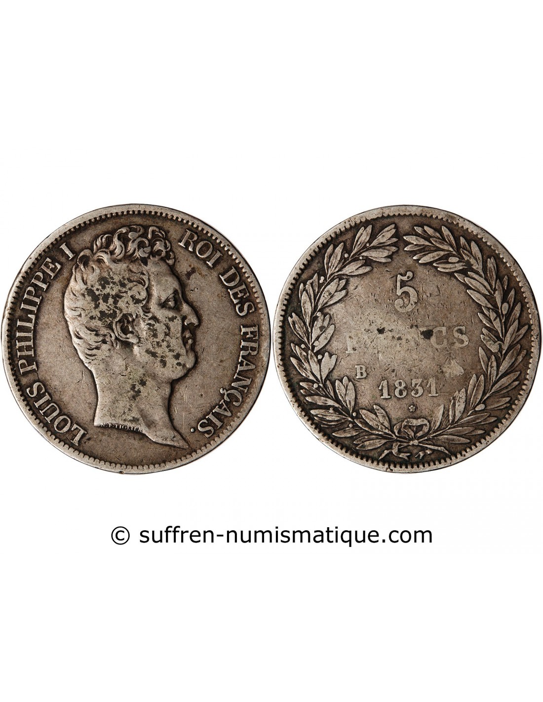 LOUIS PHILIPPE - 5 FRANCS ARGENT 1831 B ROUEN "Type Tiolier, Tr creux"