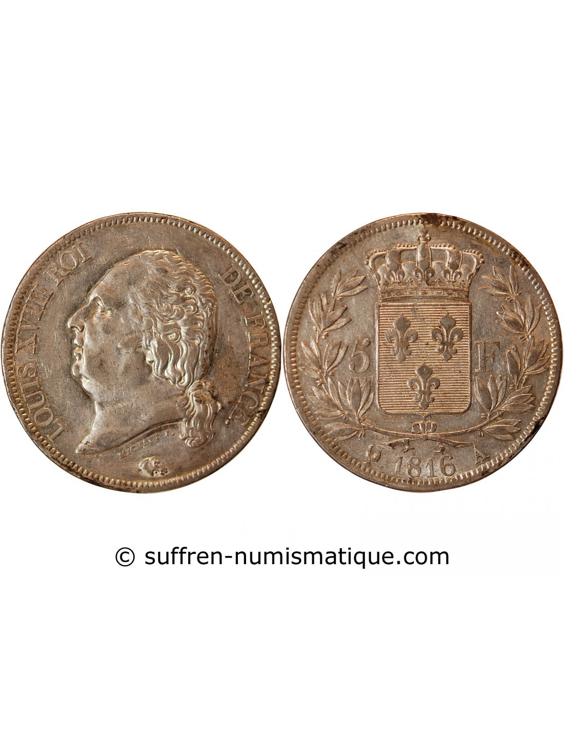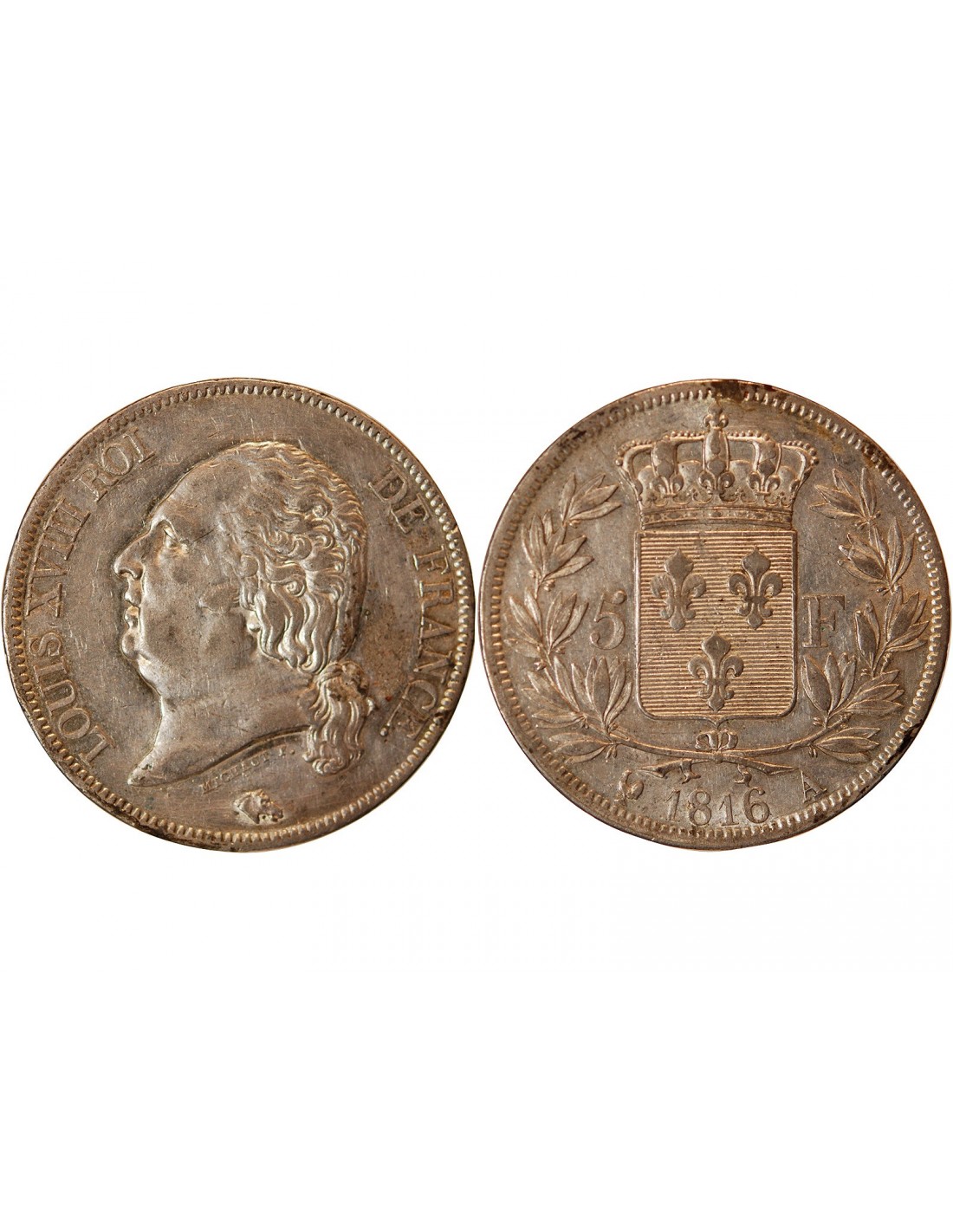 LOUIS XVIII - 5 FRANCS ARGENT 1816 A PARIS