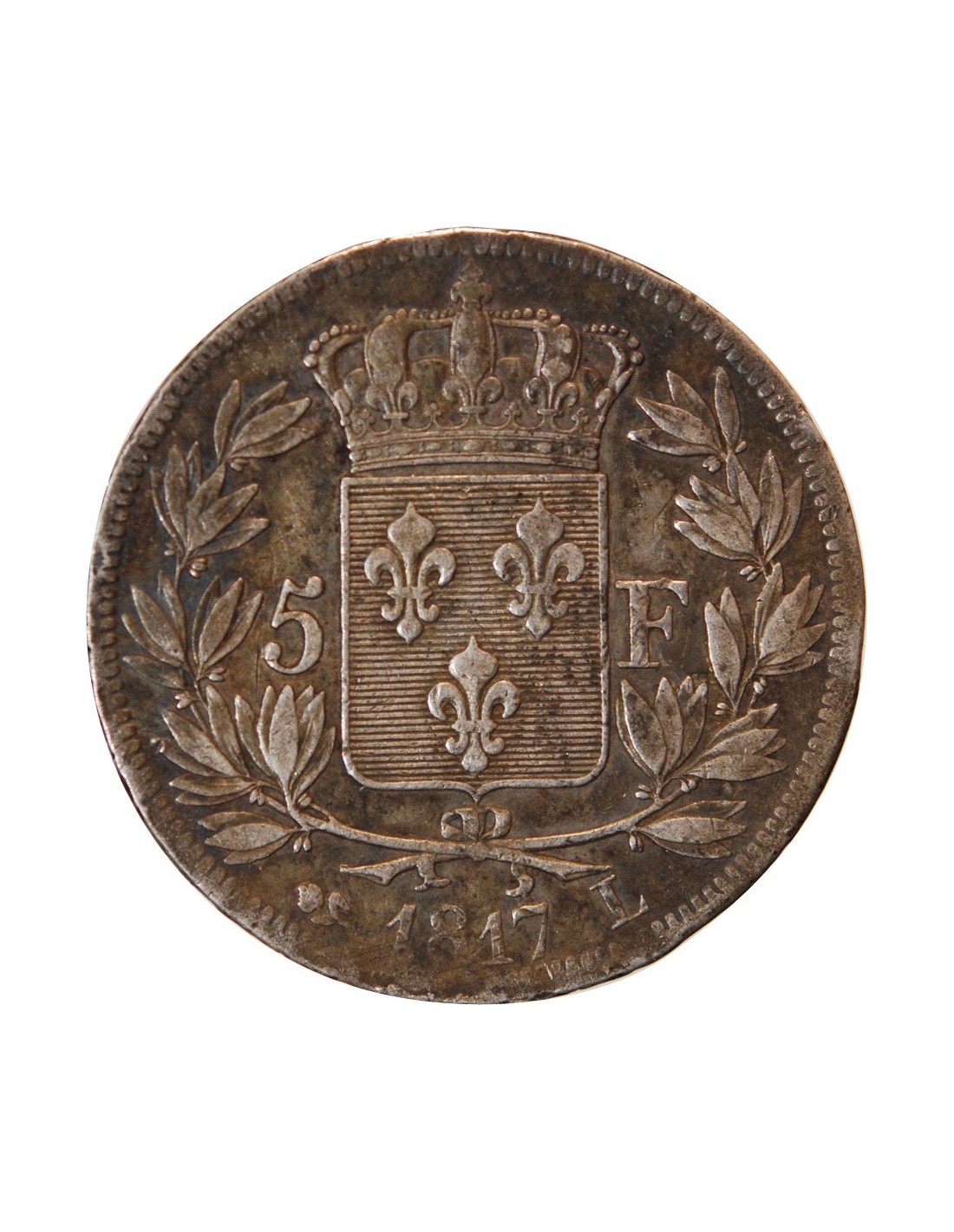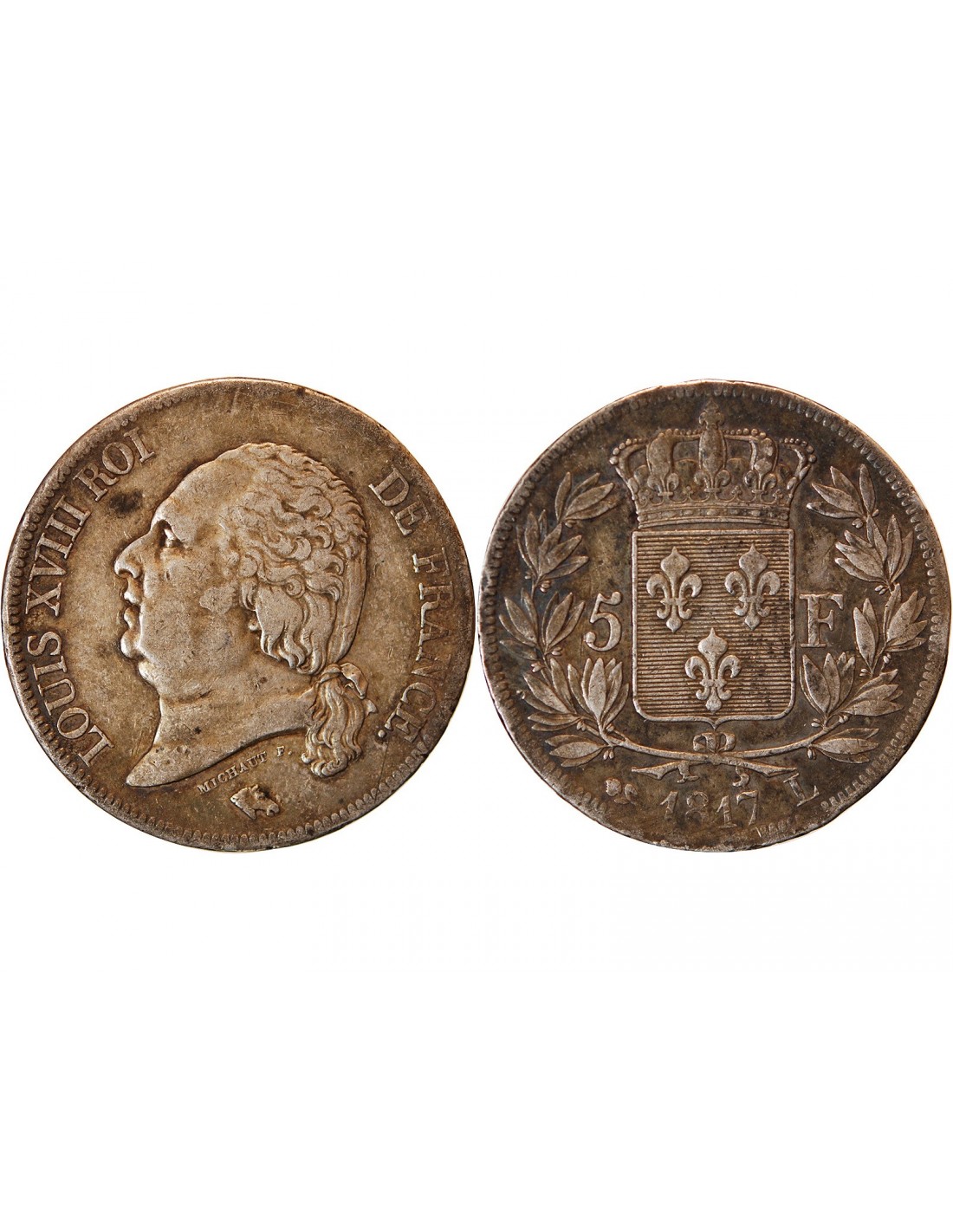 LOUIS XVIII - 5 FRANCS ARGENT 1817 L BAYONNE