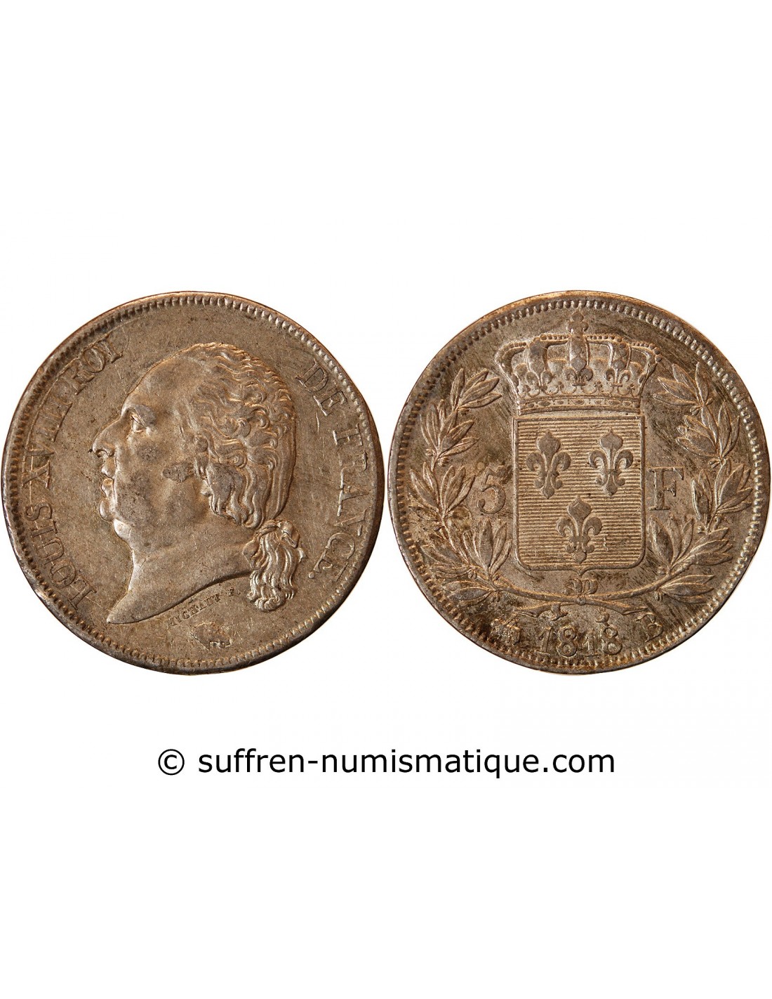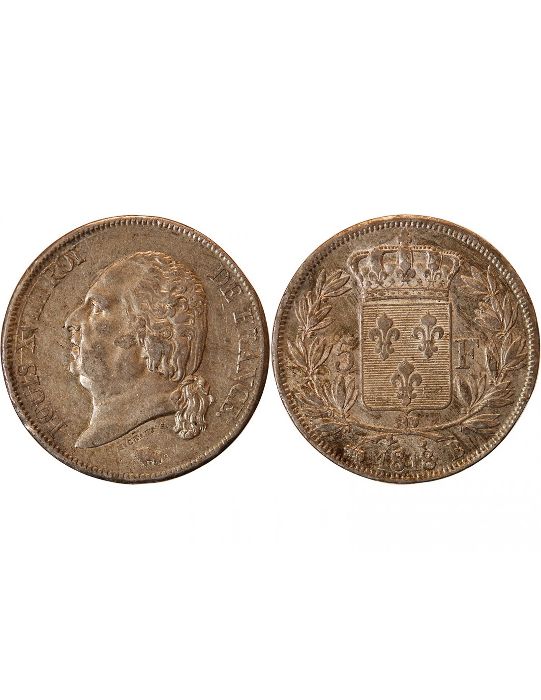 LOUIS XVIII - 5 FRANCS ARGENT 1818 B ROUEN