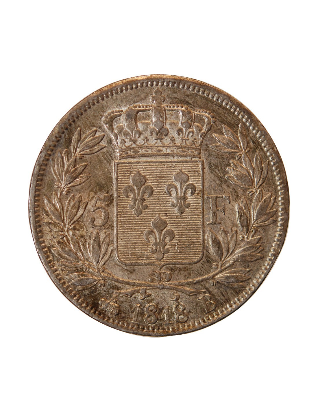 France Louis XVIII - 5 Francs Argent 1818 B Rouen