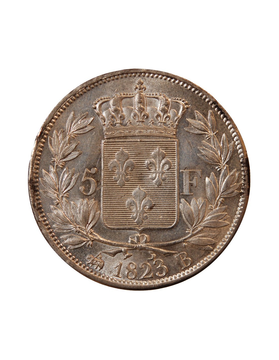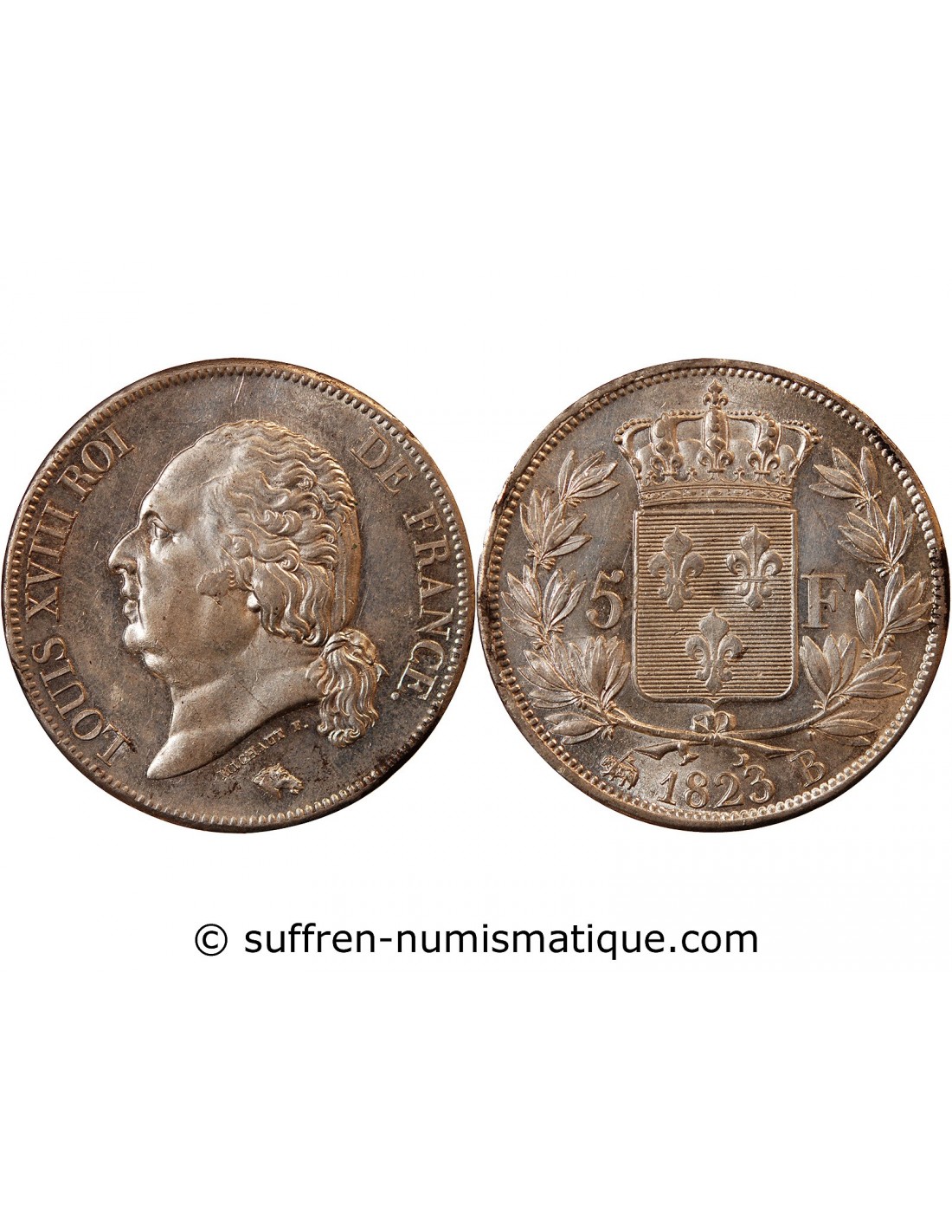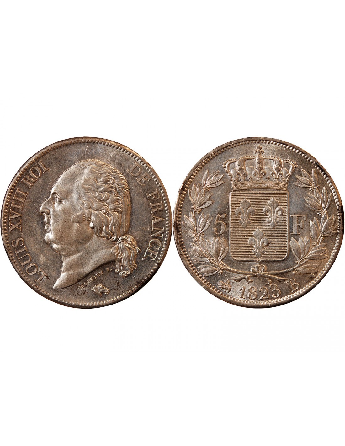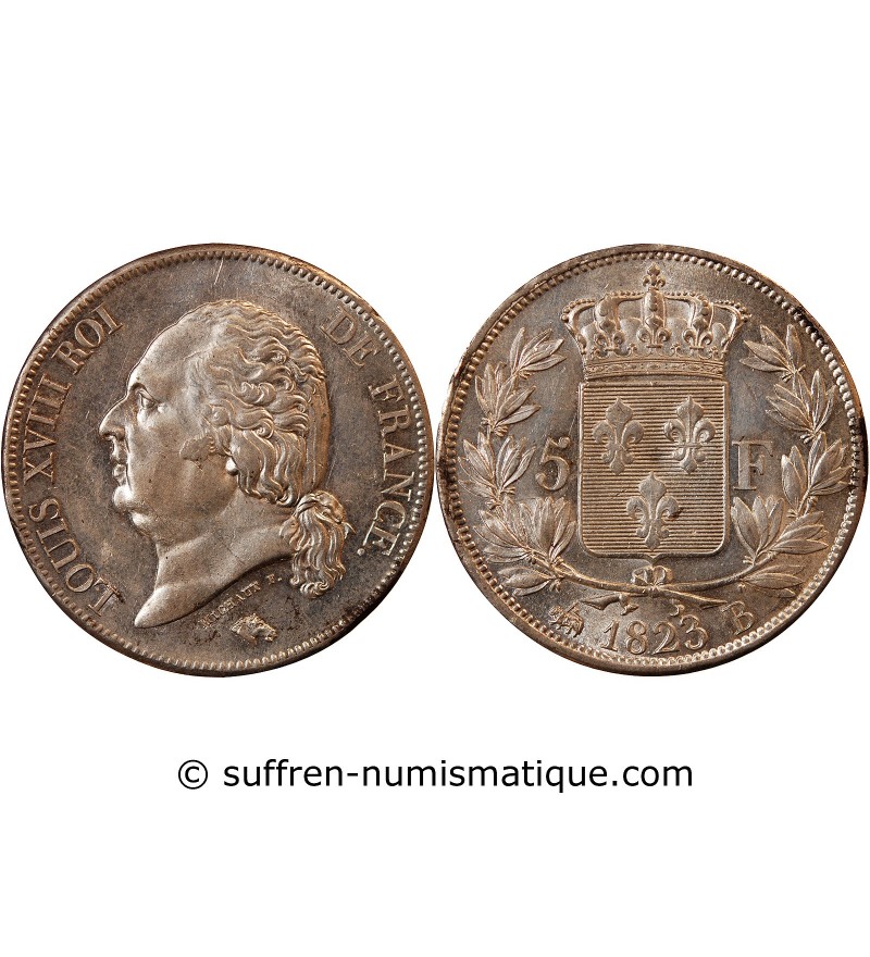 LOUIS XVIII - 5 FRANCS ARGENT 1823 B ROUEN