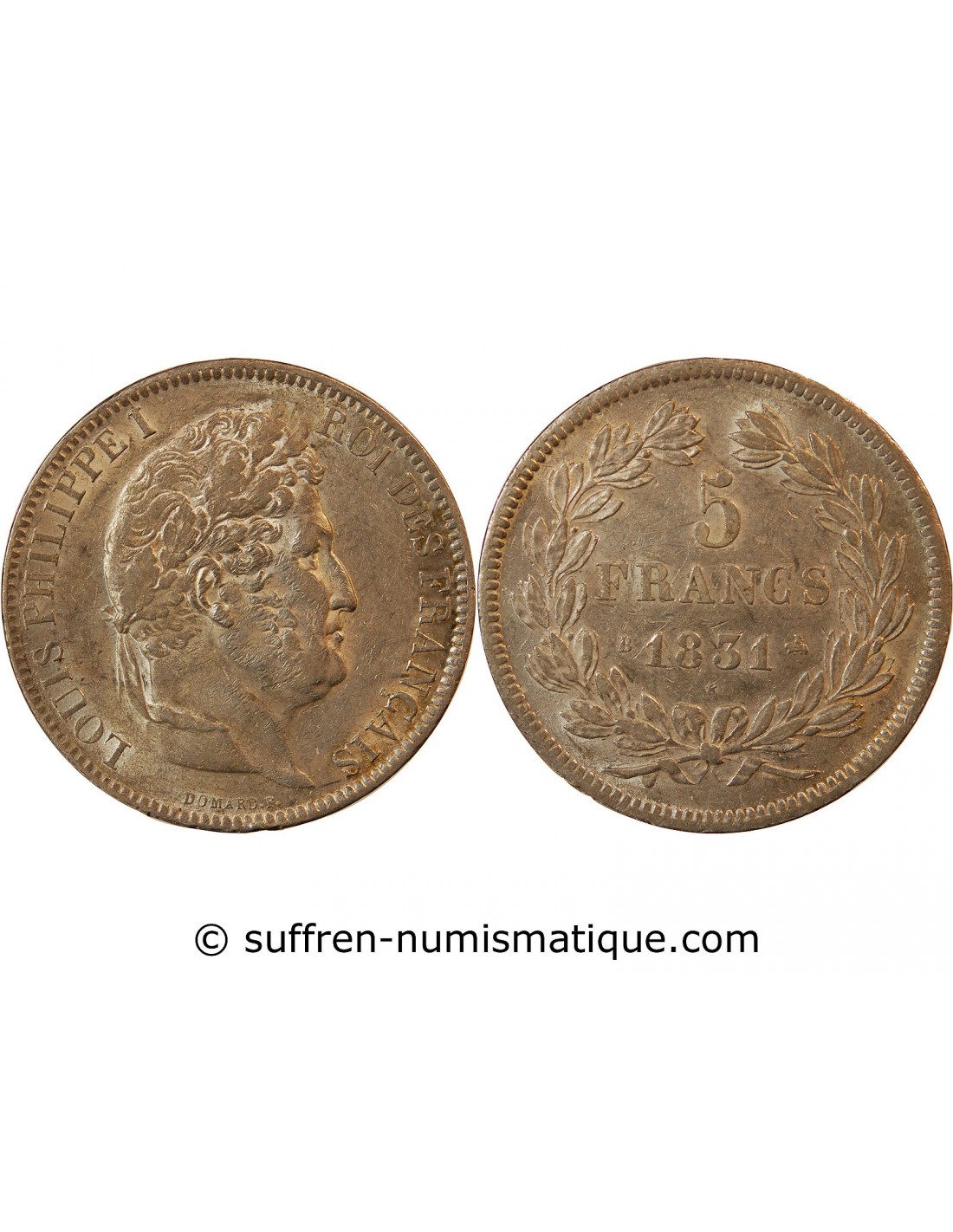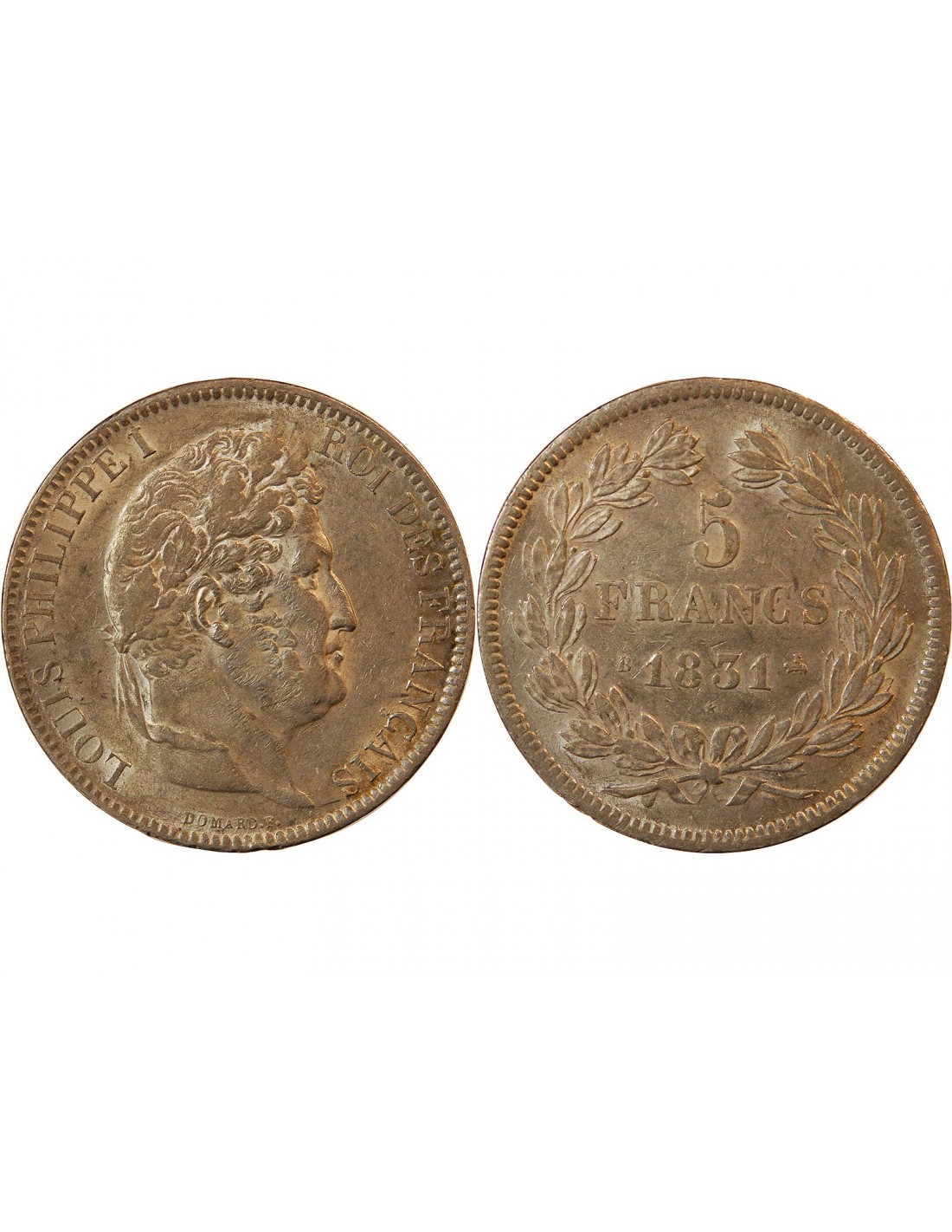 LOUIS PHILIPPE - 5 FRANCS ARGENT 1831 B ROUEN "Type Domard, Tr Relief"