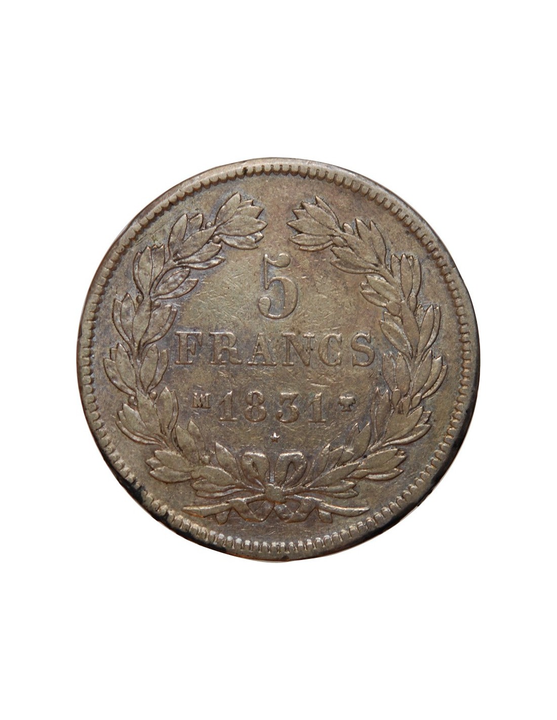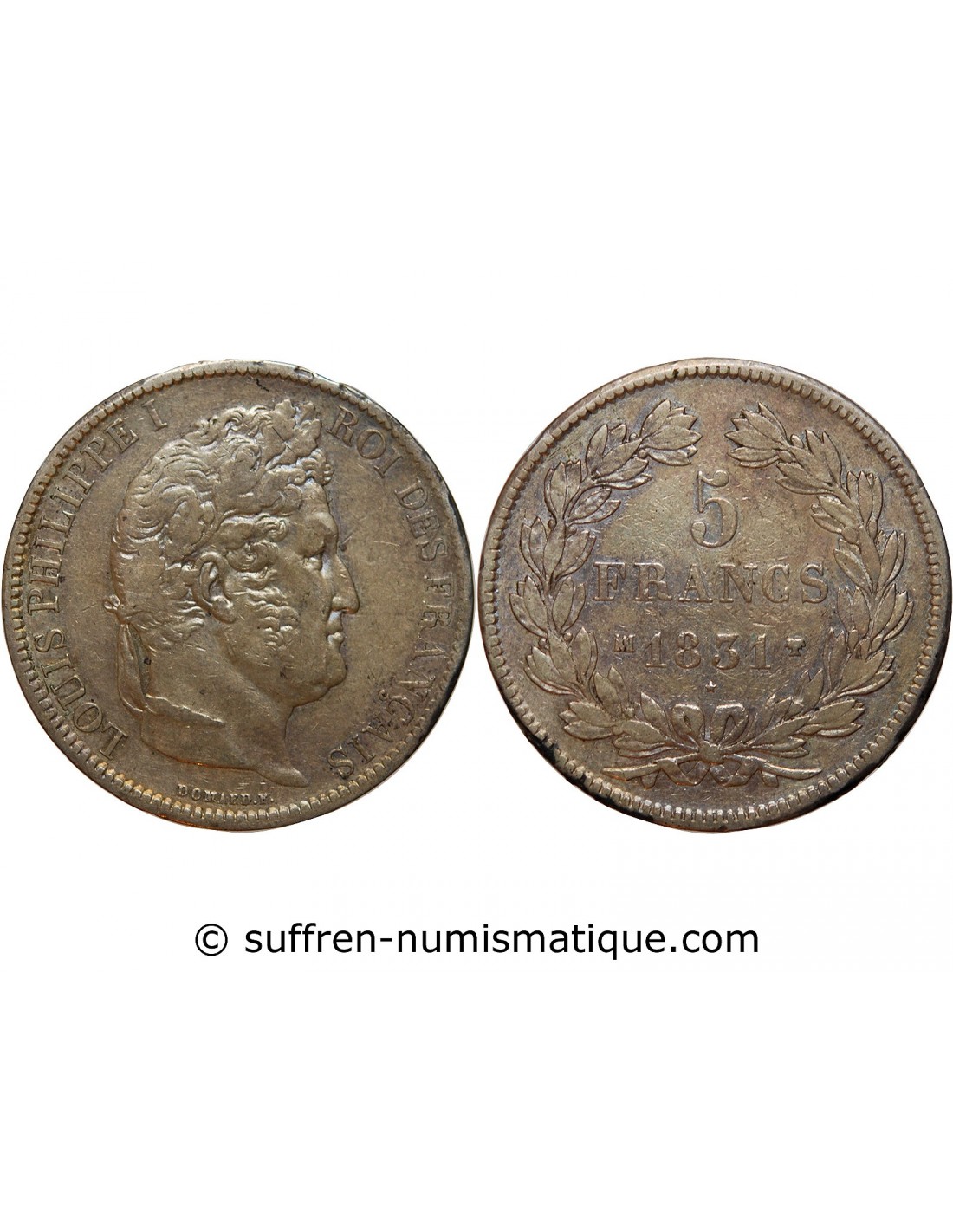 5 FRANCS LOUIS PHILIPPE 1831 MA MARSEILLE Tête Laurée Tranche en Creux