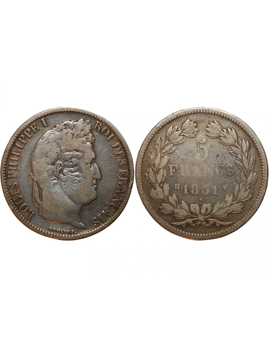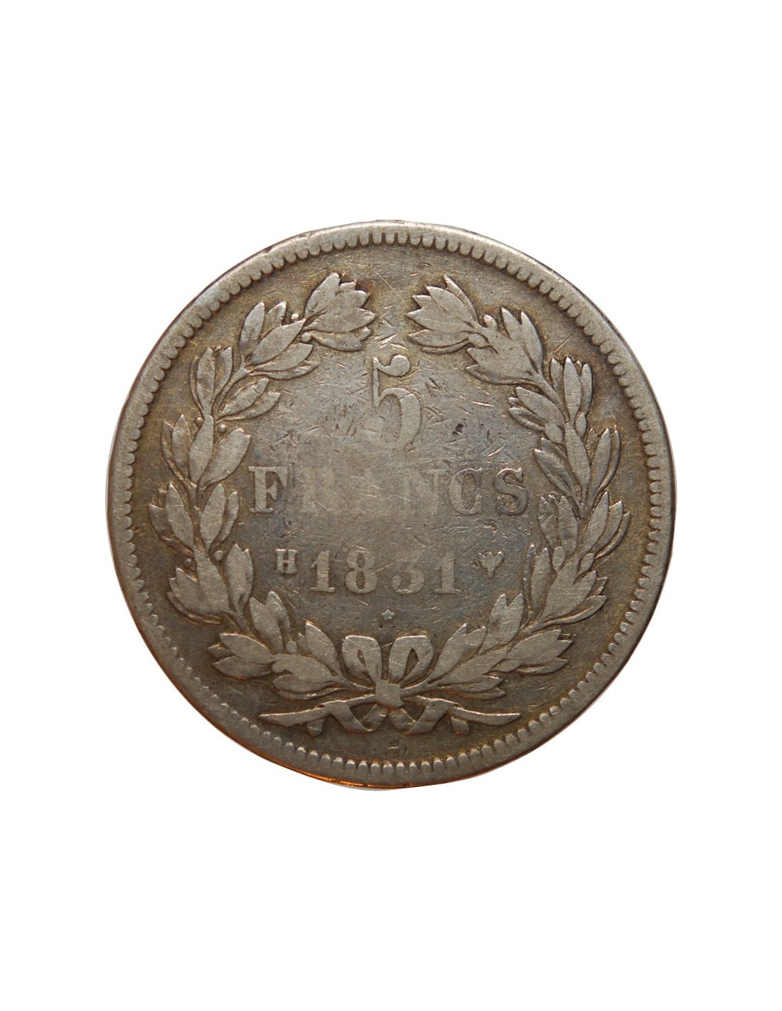 5 FRANCS LOUIS PHILIPPE 1831 H LA ROCHELLE Tête Laurée Tranche en Relief