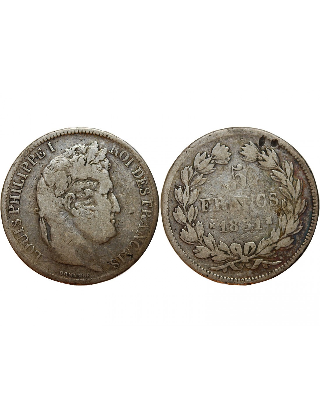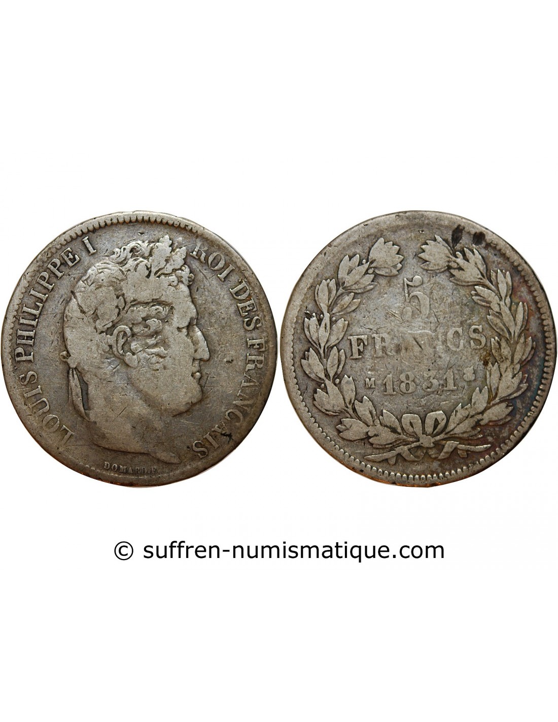 5 FRANCS LOUIS PHILIPPE 1831 M TOULOUSE Tête Laurée Tranche en Relief