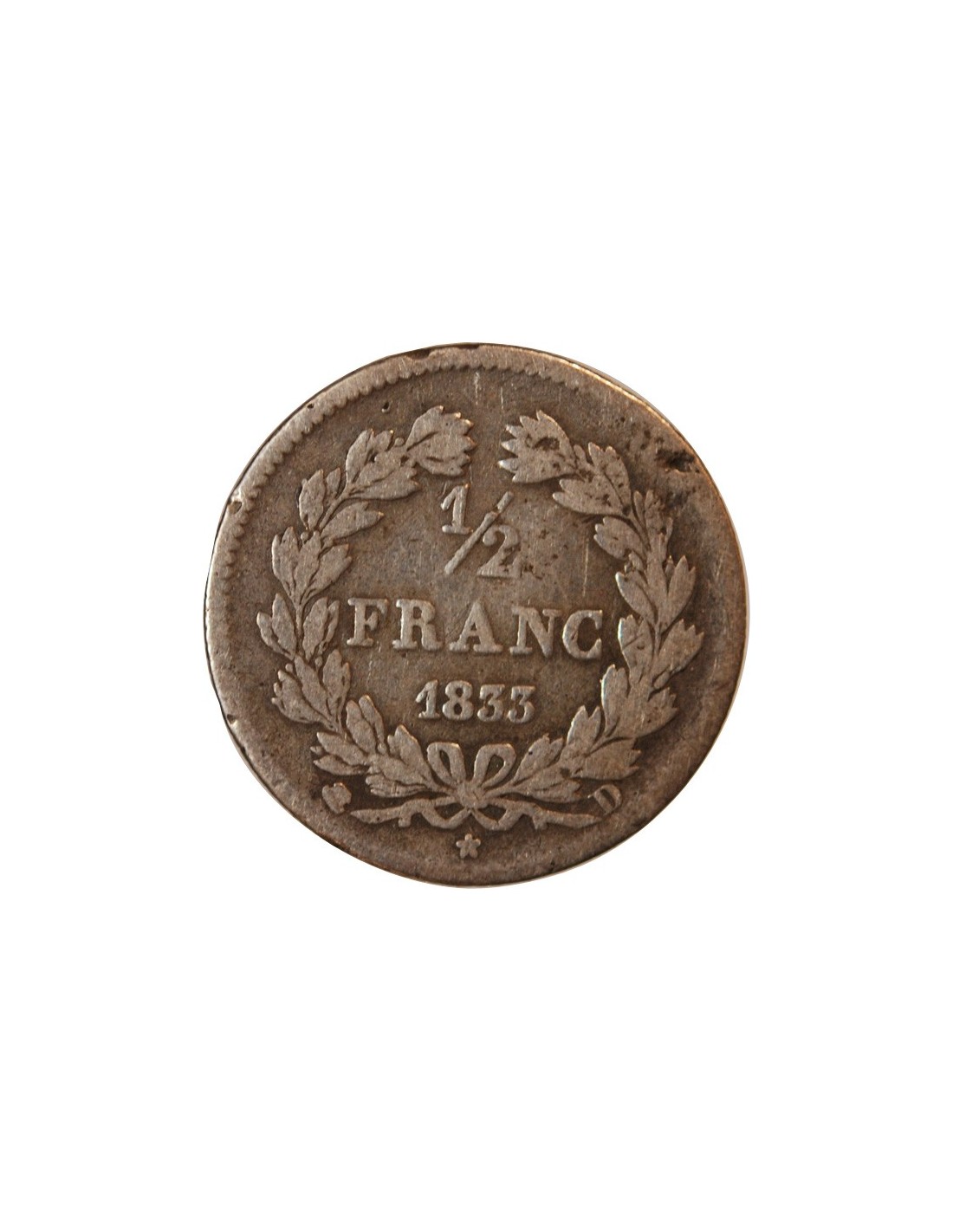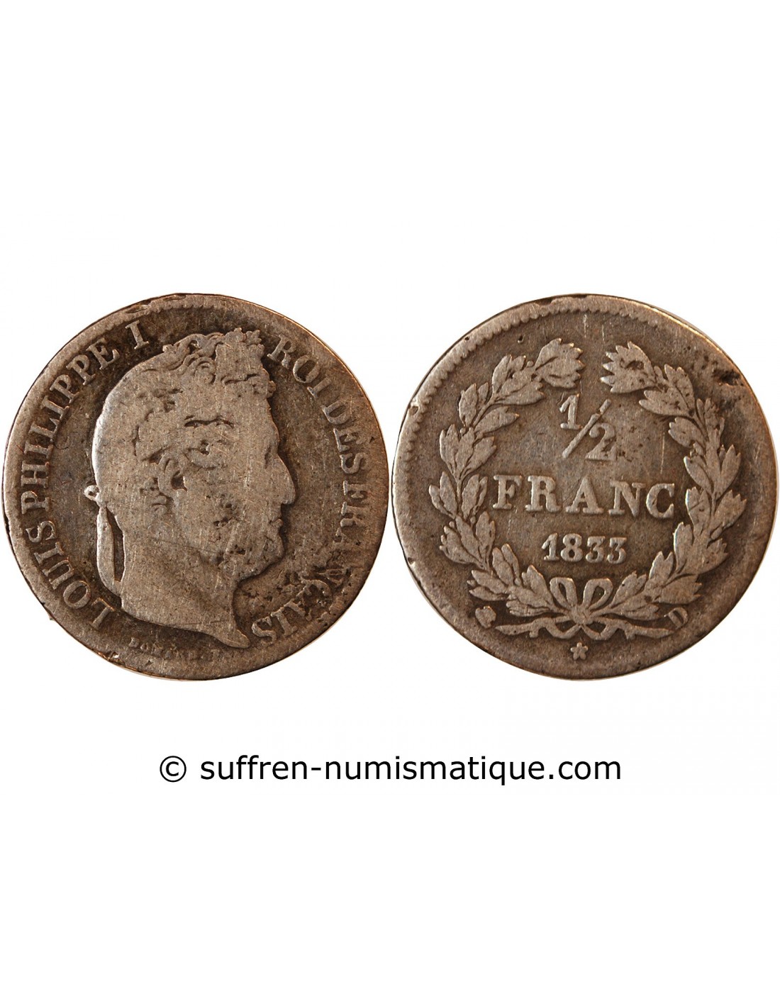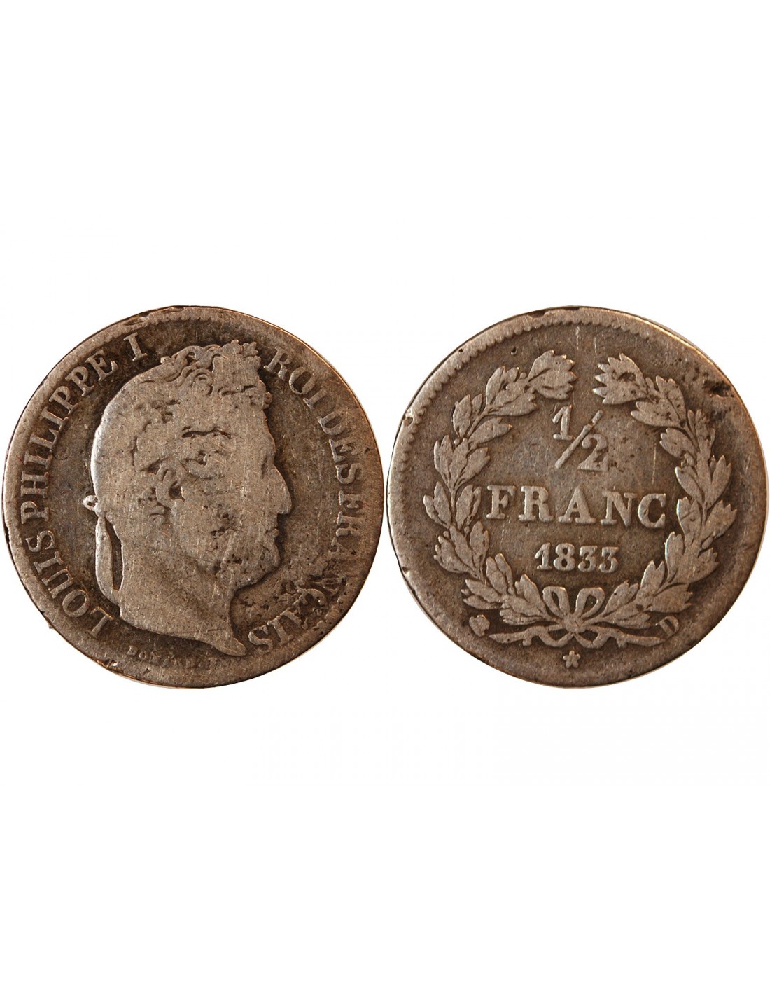 LOUIS-PHILIPPE Ier - 1/2 FRANC ARGENT 1833 D LYON - RARE