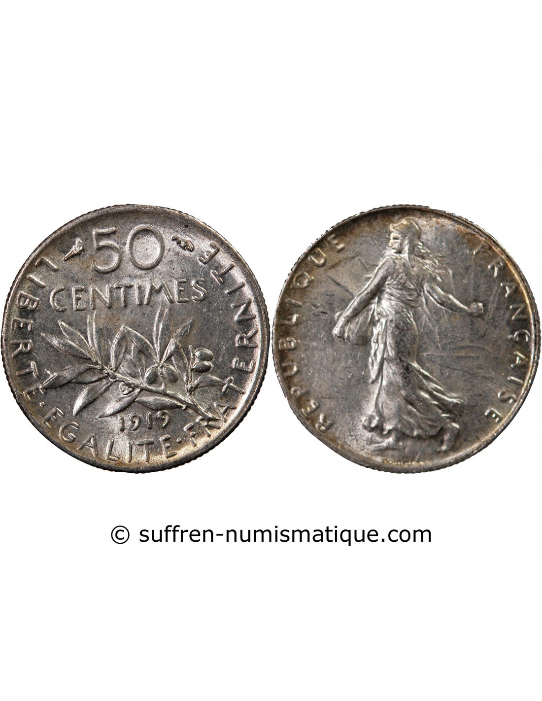 France Semeuse - 50 Centimes Argent - 1919 Paris