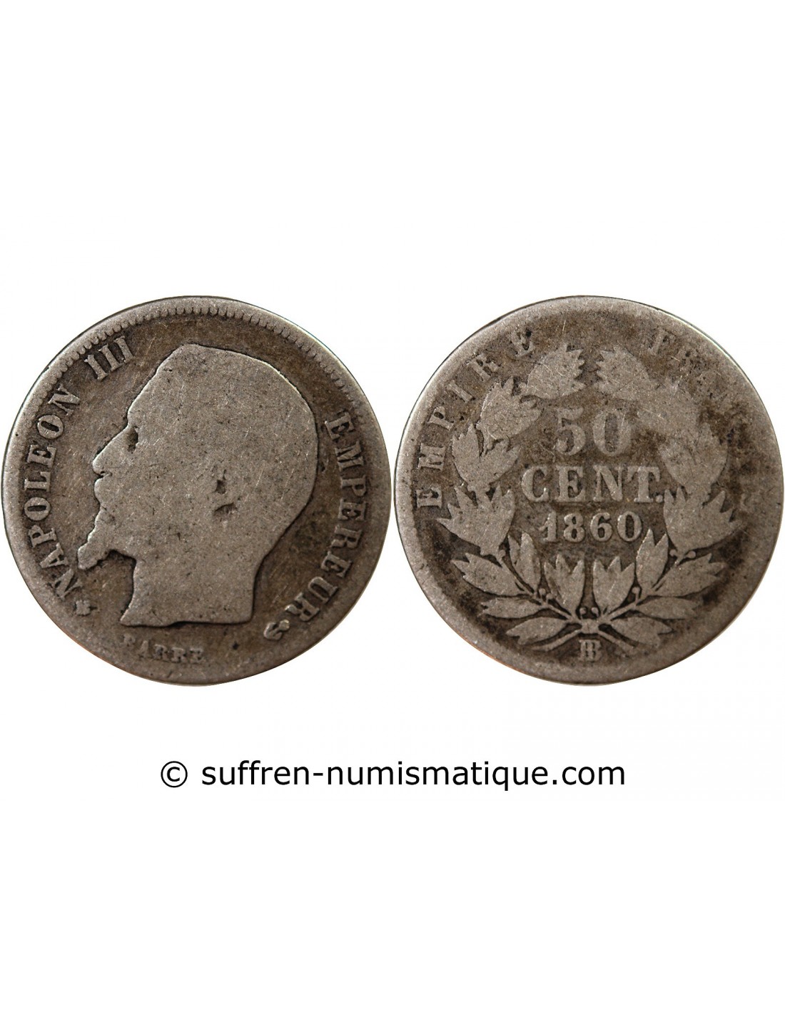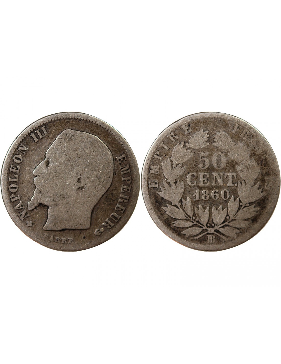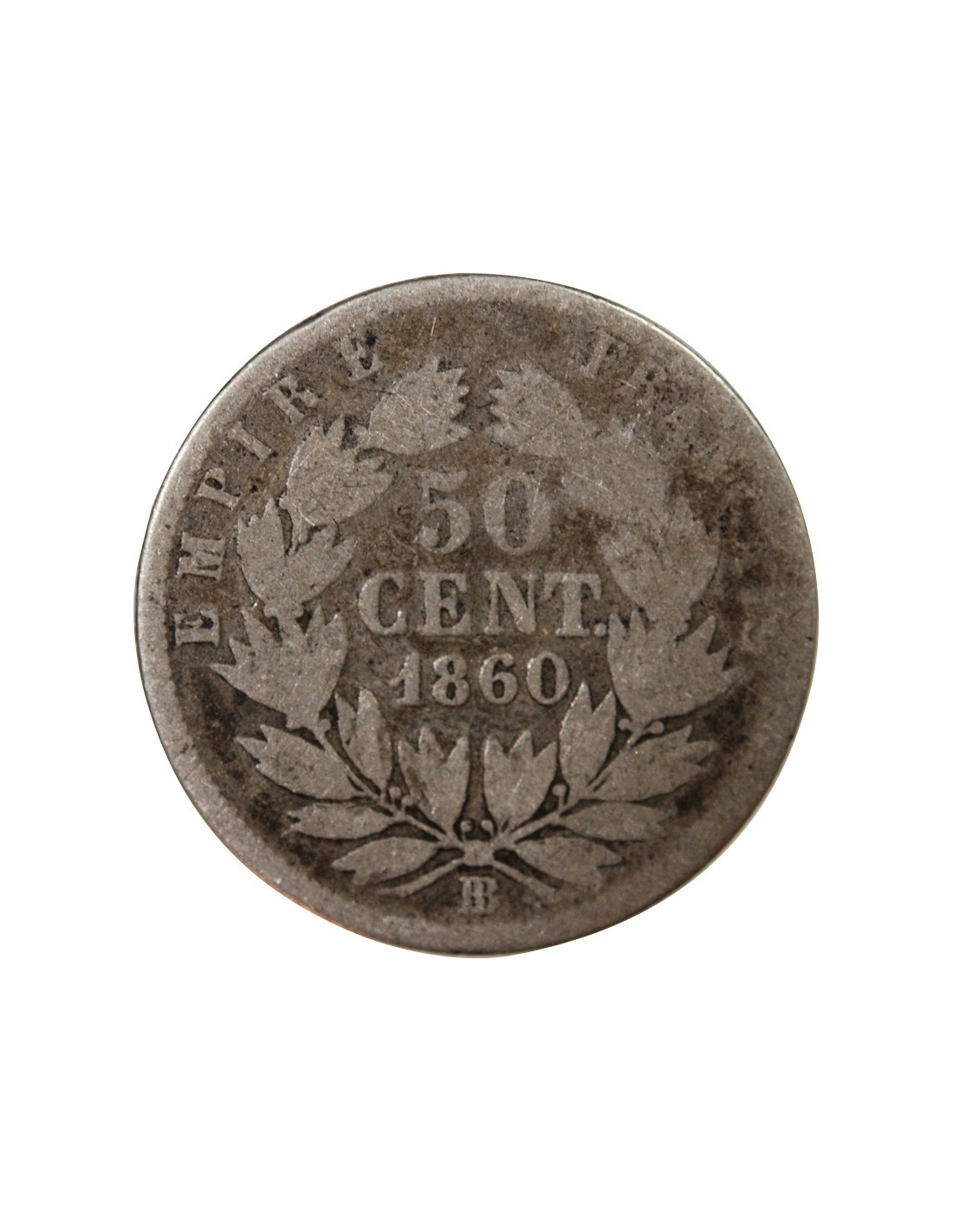 NAPOLEON III, TÊTE NUE - 50 CENTIMES ARGENT 1860 BB STRASBOURG - Croix tréflée