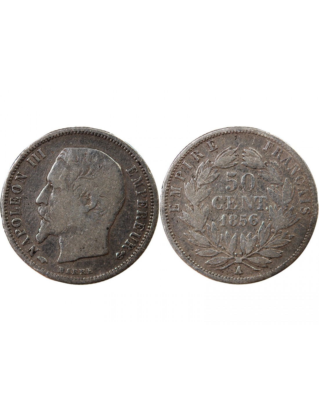 France NAPOLEON III, TÊTE NUE - 50 CENTIMES ARGENT 1856 A PARIS