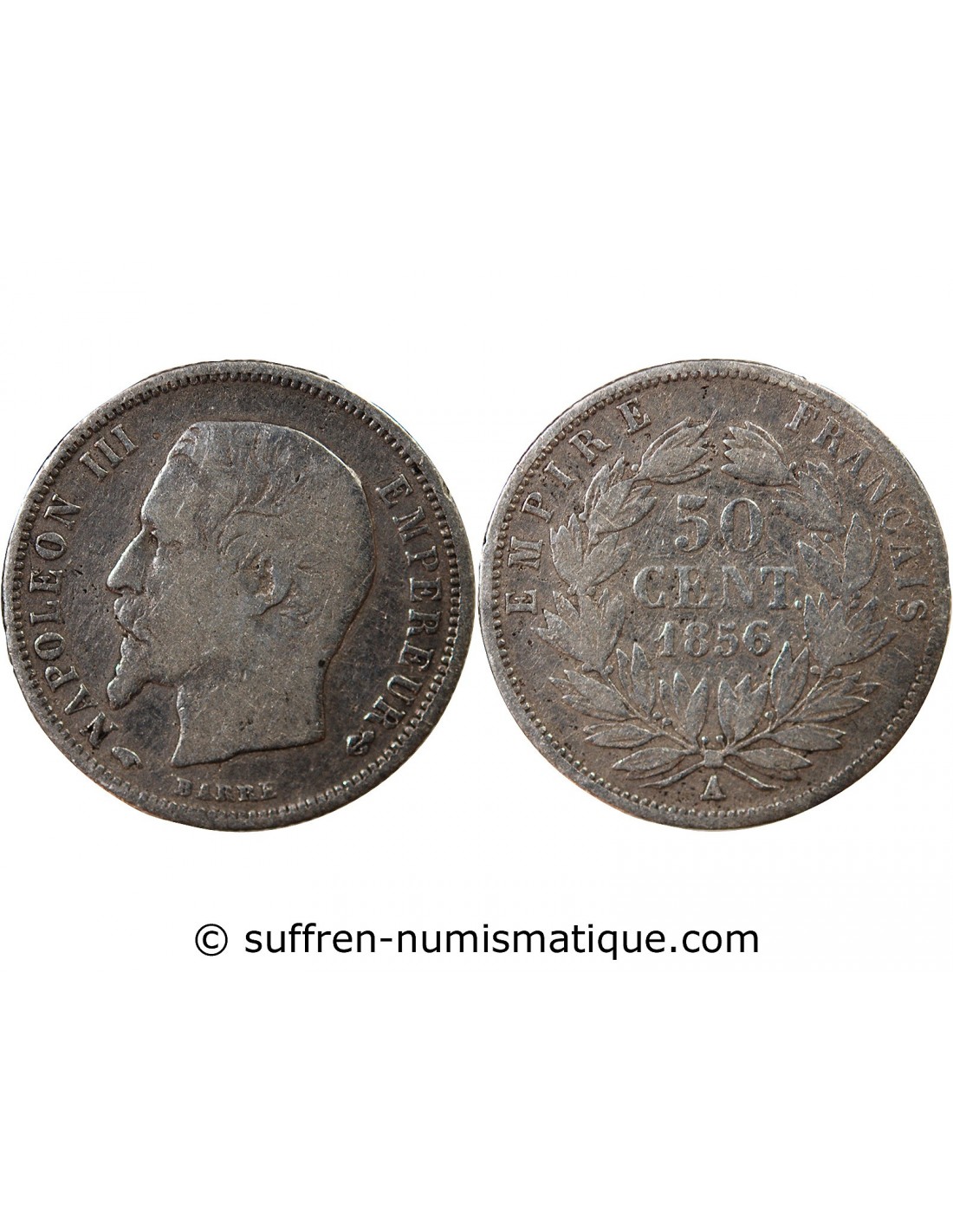 NAPOLEON III, TÊTE NUE - 50 CENTIMES ARGENT 1856 A PARIS