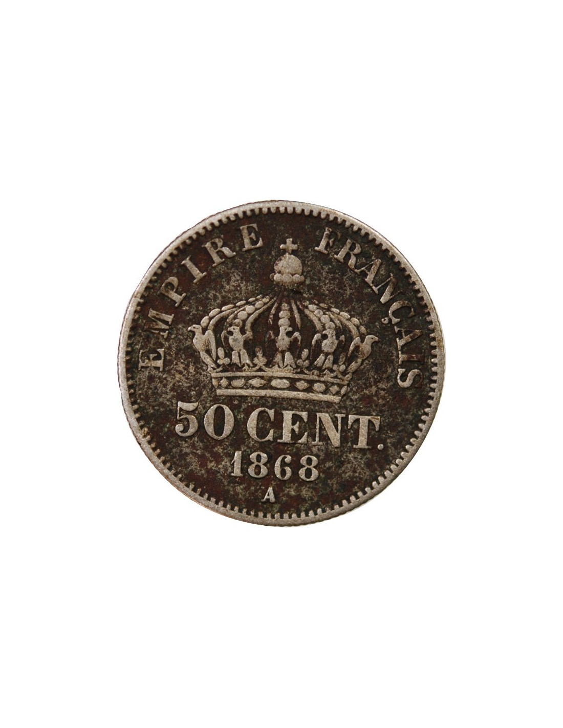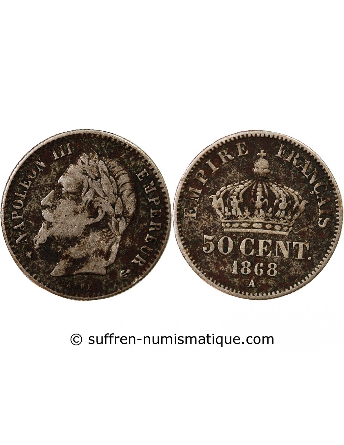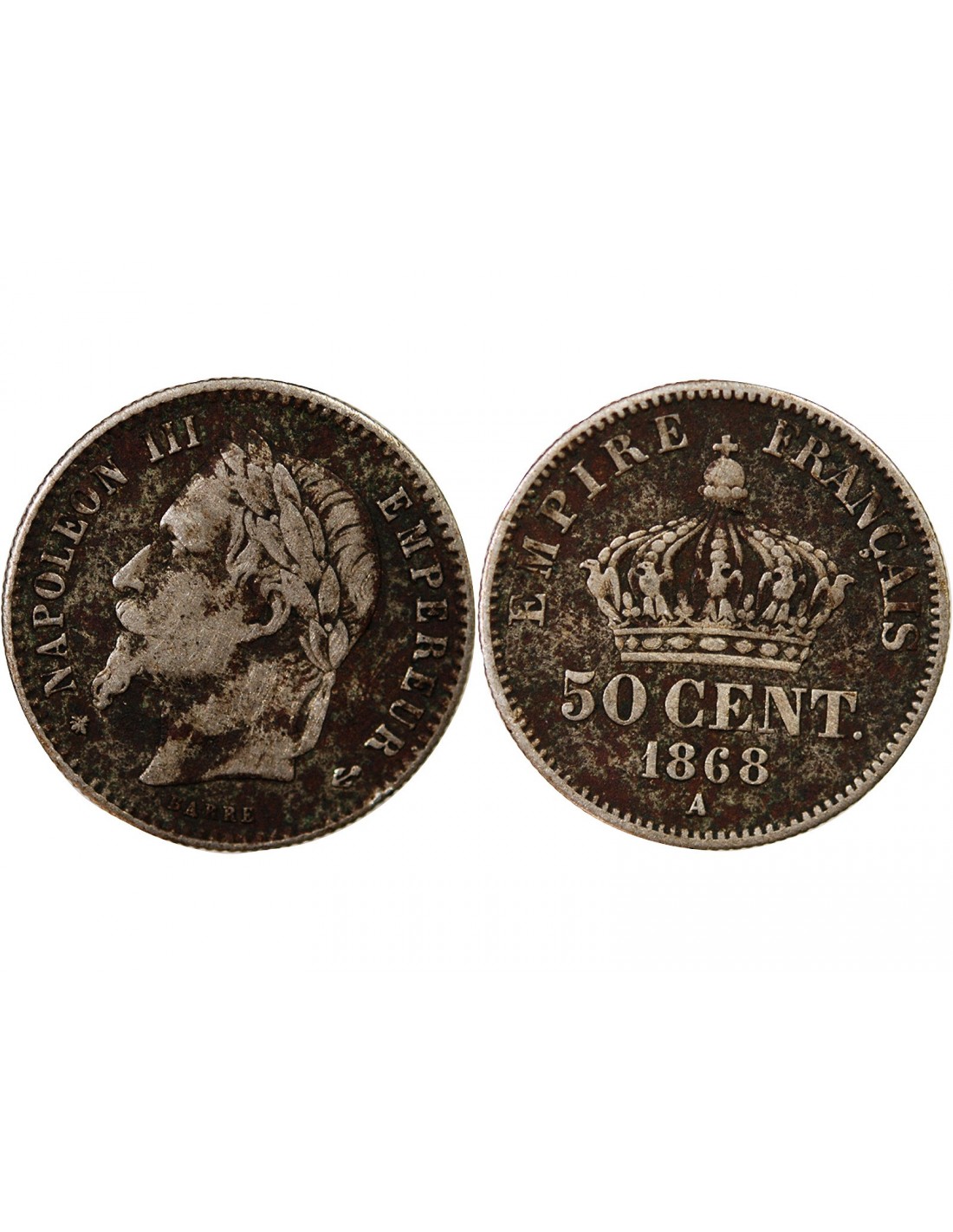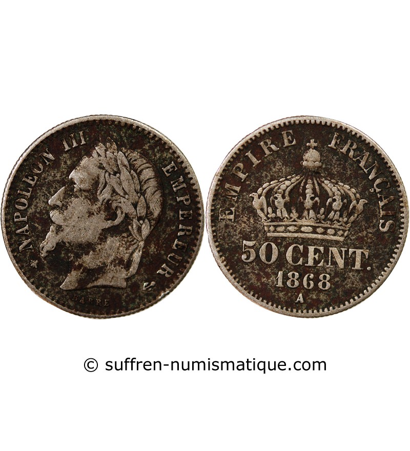 NAPOLEON III, TÊTE LAURÉE - 50 CENTIMES ARGENT 1868 A PARIS