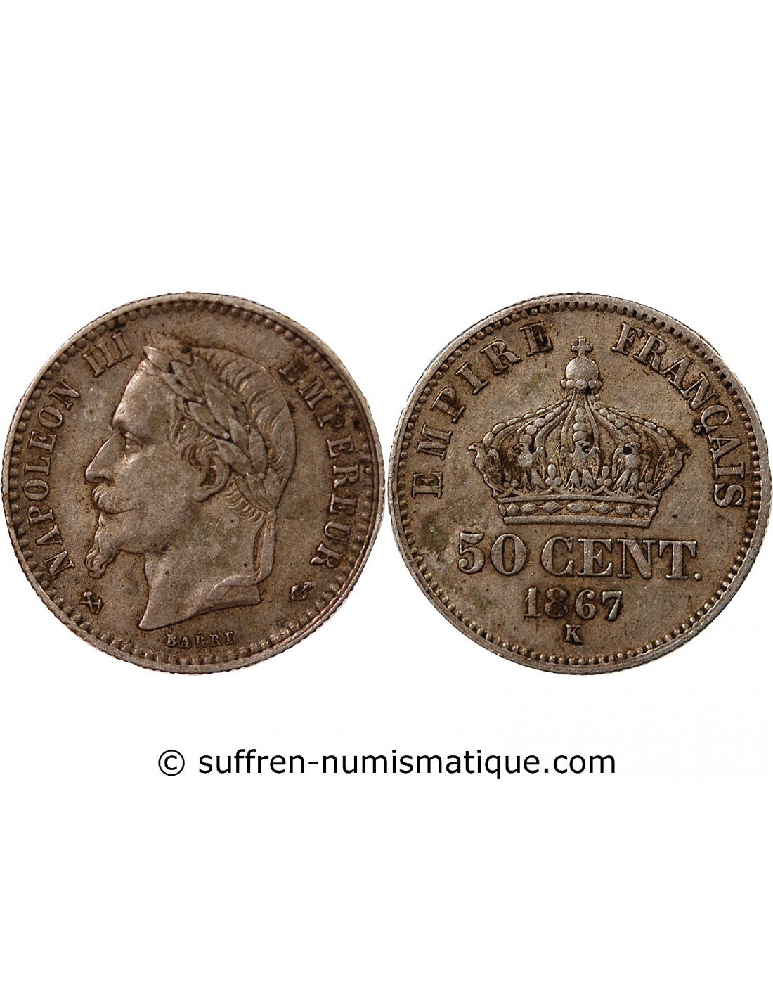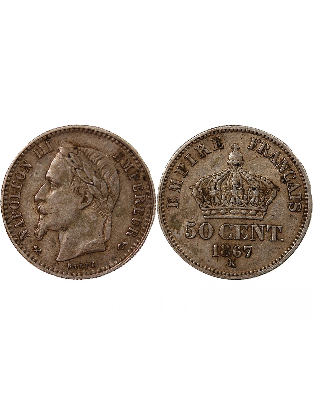 NAPOLEON III - 50 CENTIMES ARGENT 1867 K BORDEAUX