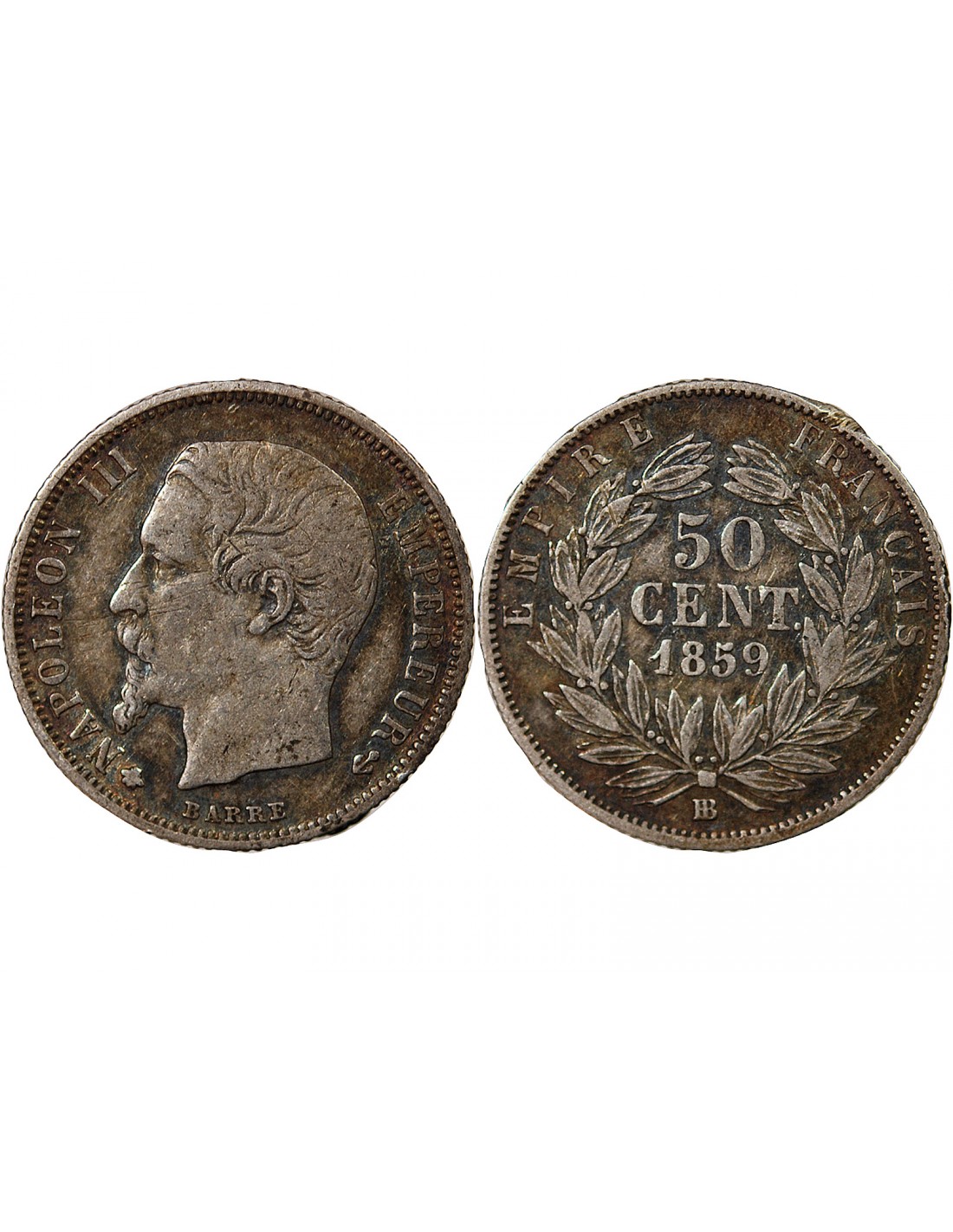 NAPOLEON III - 50 CENTIMES ARGENT 1859 BB STRASBOURG