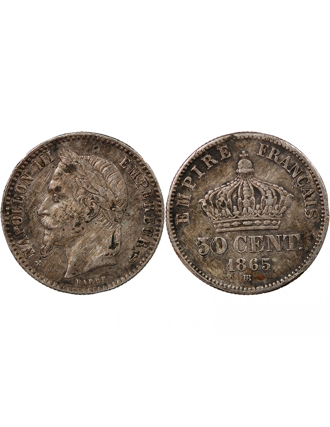NAPOLEON III - 50 CENTIMES ARGENT 1865 BB STRASBOURG