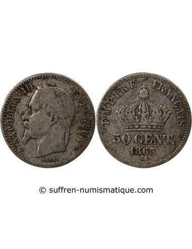 NAPOLEON III - 50 CENTIMES ARGENT 1865 K BORDEAUX