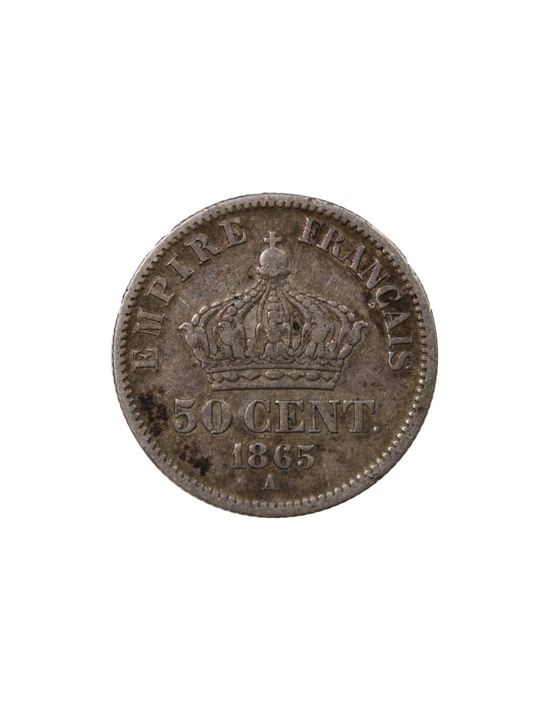 France NAPOLEON III, TÊTE LAURÉE - 50 CENTIMES ARGENT 1865 A PARIS