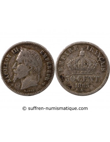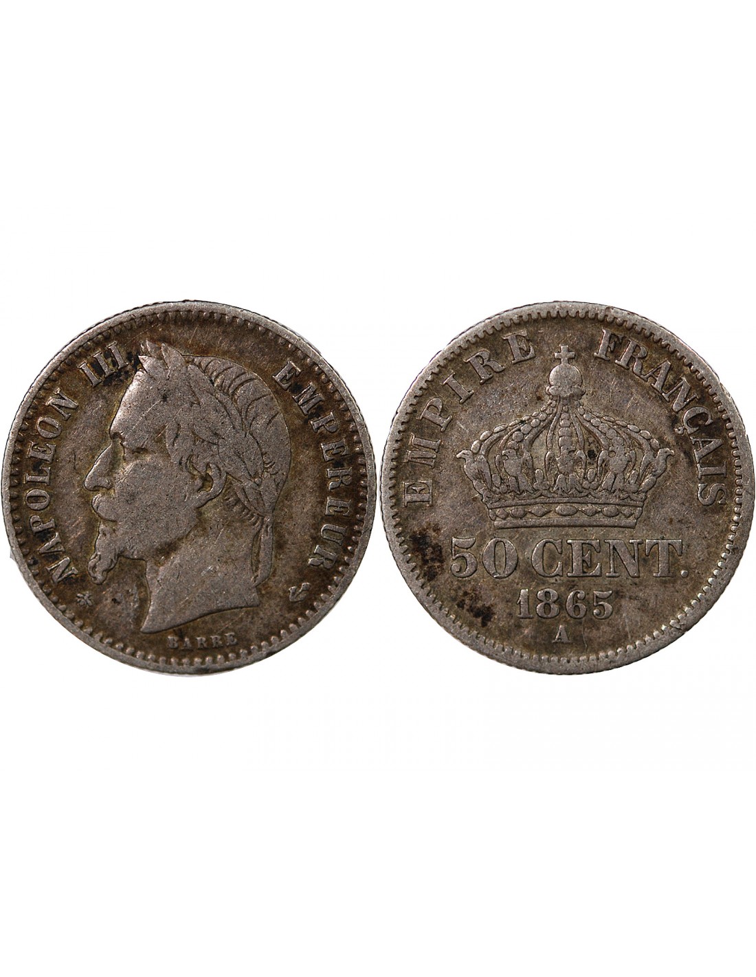 NAPOLEON III, TÊTE LAURÉE - 50 CENTIMES ARGENT 1865 A PARIS