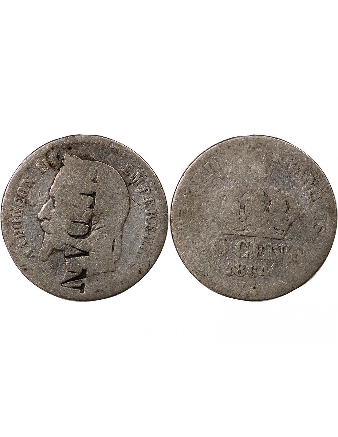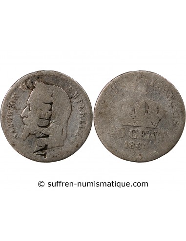 NAPOLEON III - 50 CENTIMES ARGENT - 1864, BB STRASBOURG, CONTREMARQUE SEDAN
