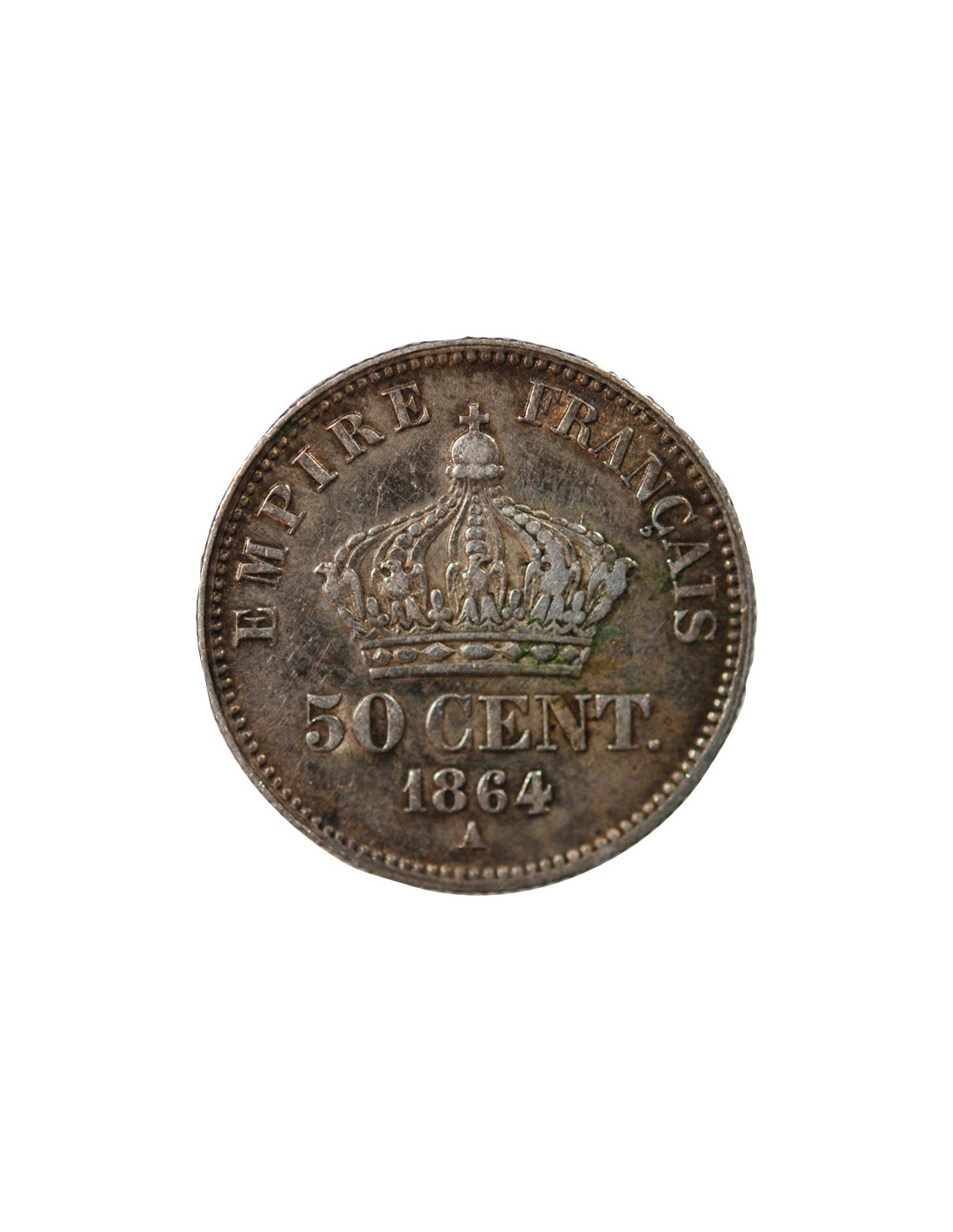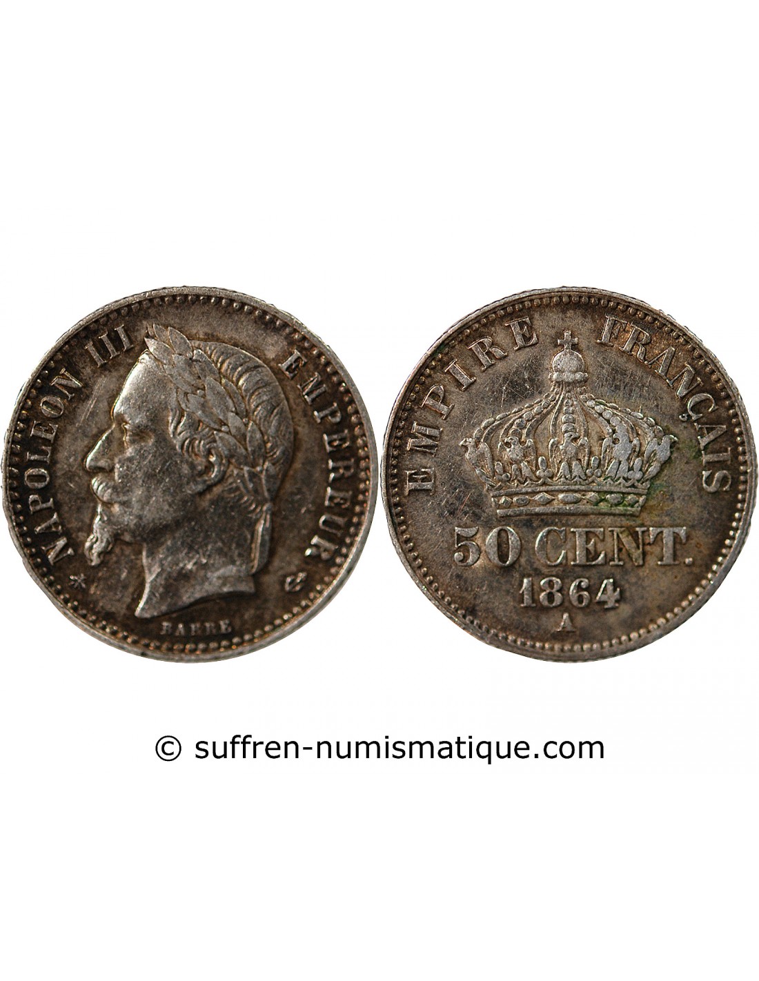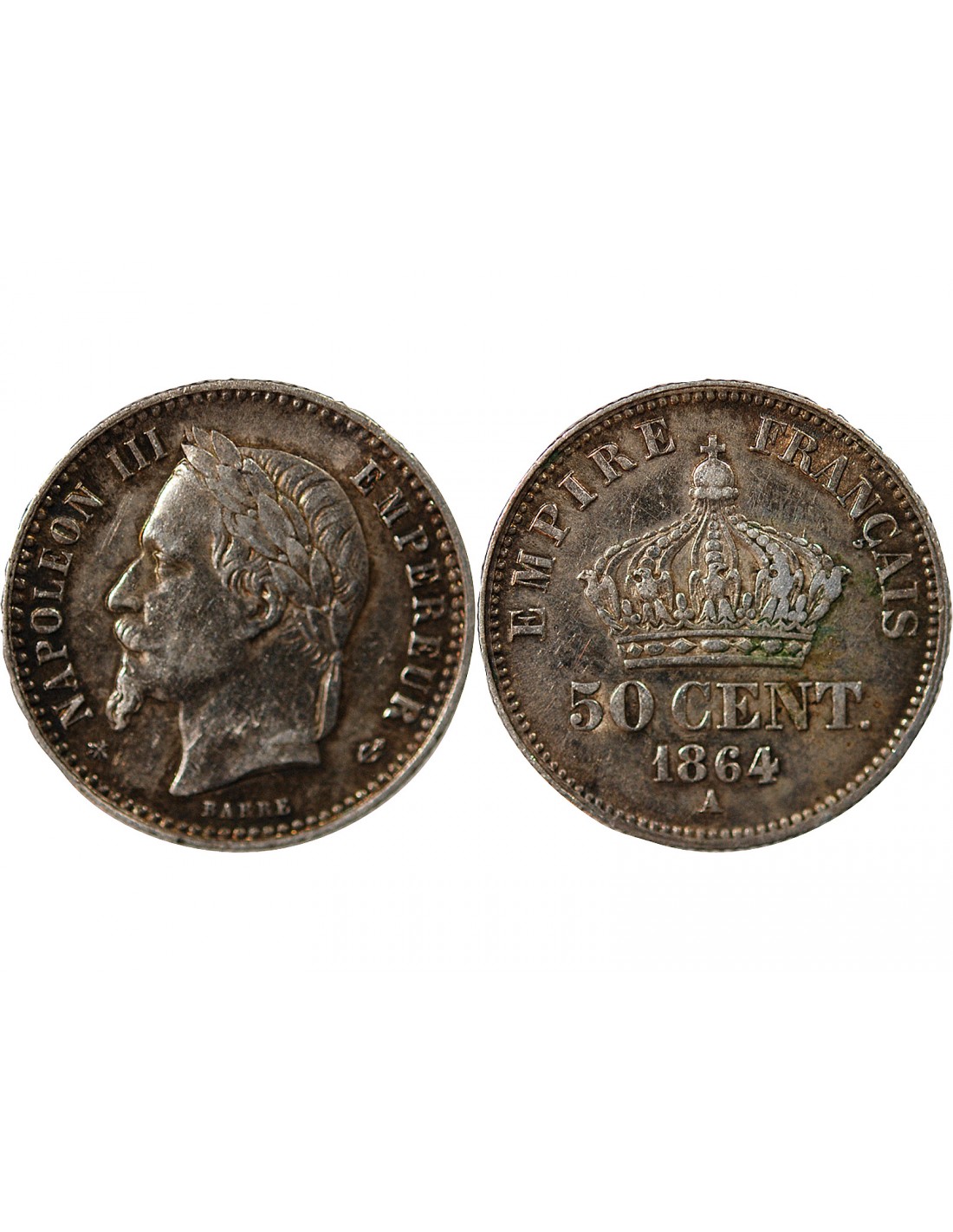 NAPOLEON III, TÊTE LAURÉE - 50 CENTIMES ARGENT - 1864 A PARIS