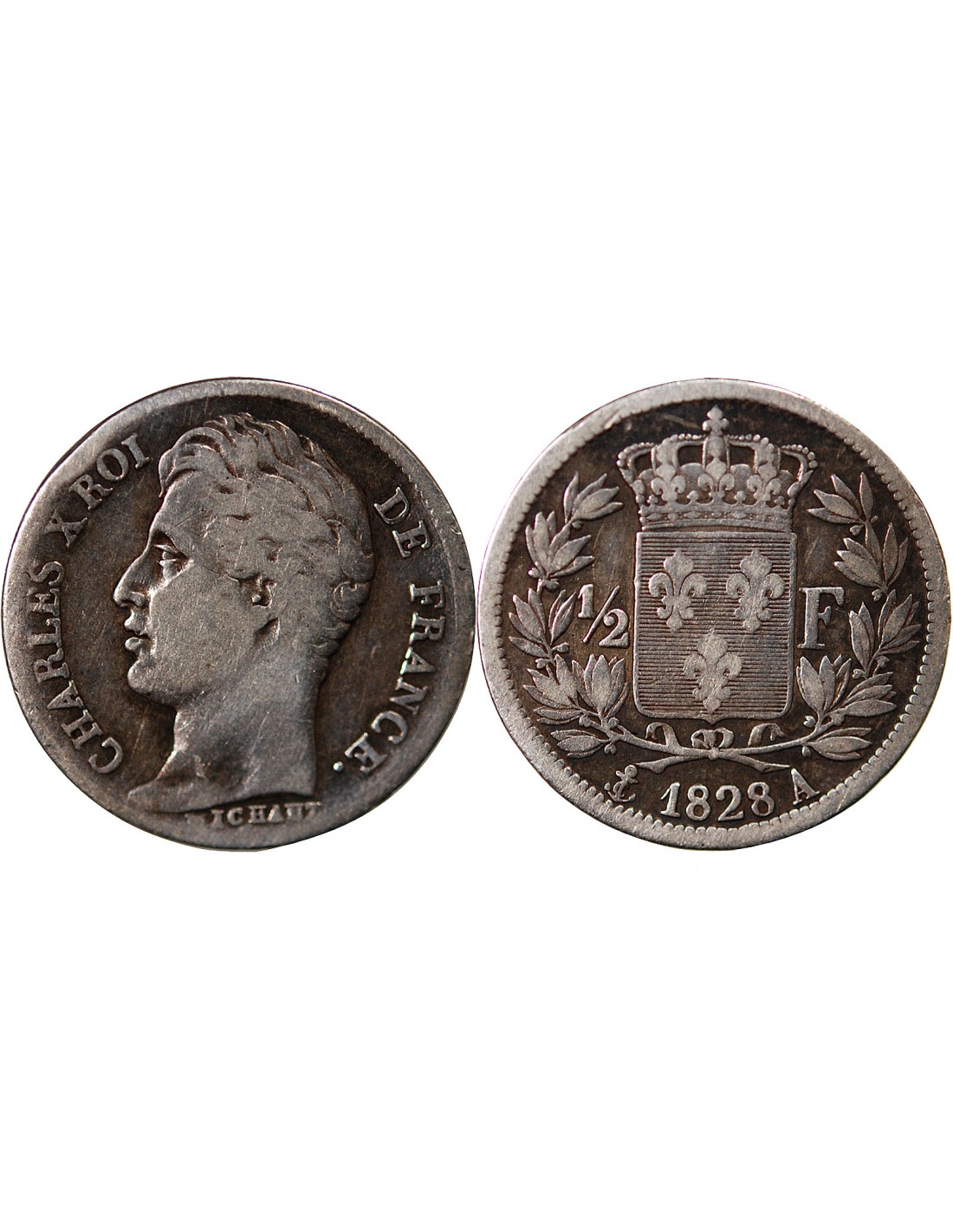CHARLES X - 1/2 FRANC ARGENT 1828 A PARIS