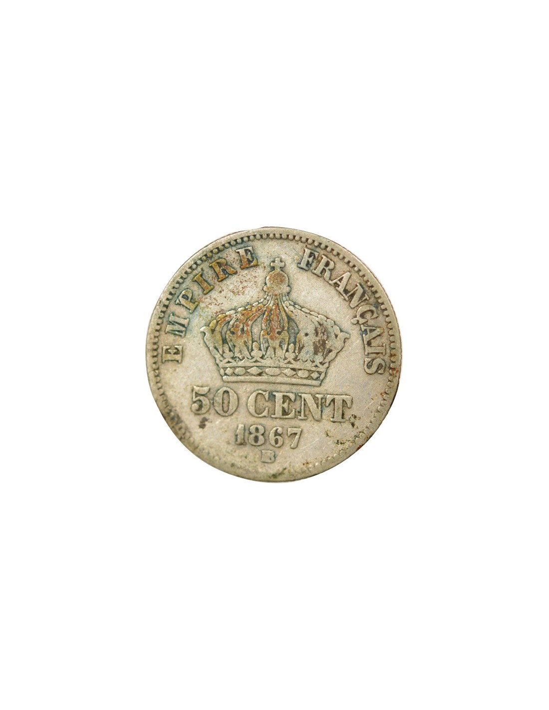 France Napoléon III - 50 Centimes Argent, Tête Laurée - 1867 BB Strasbourg