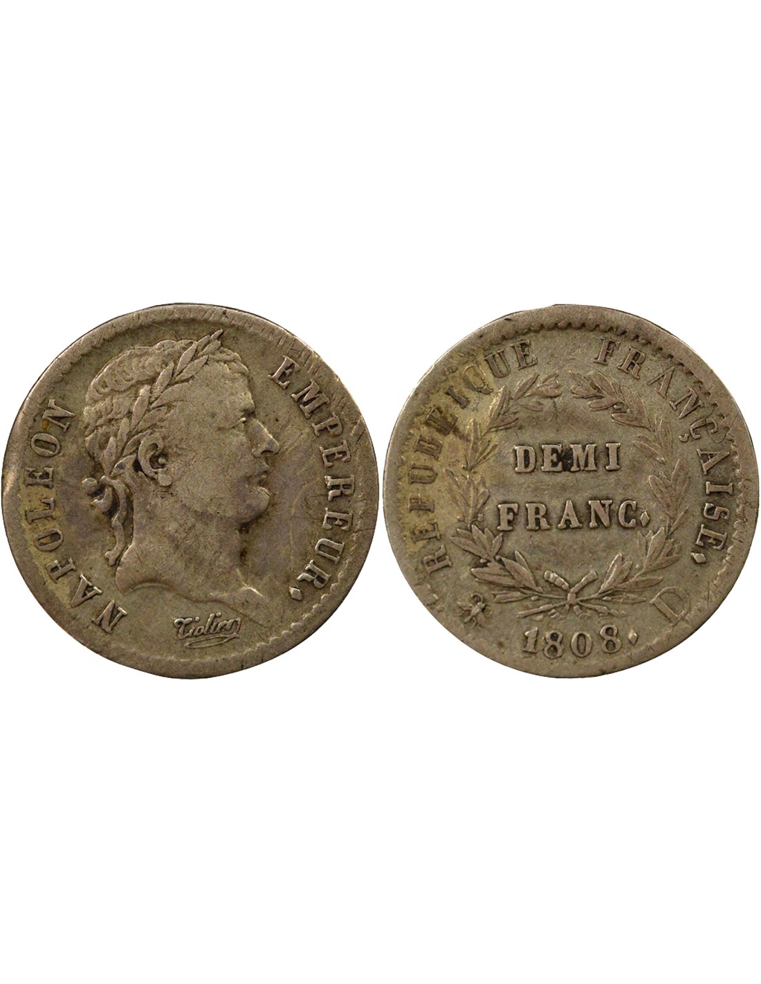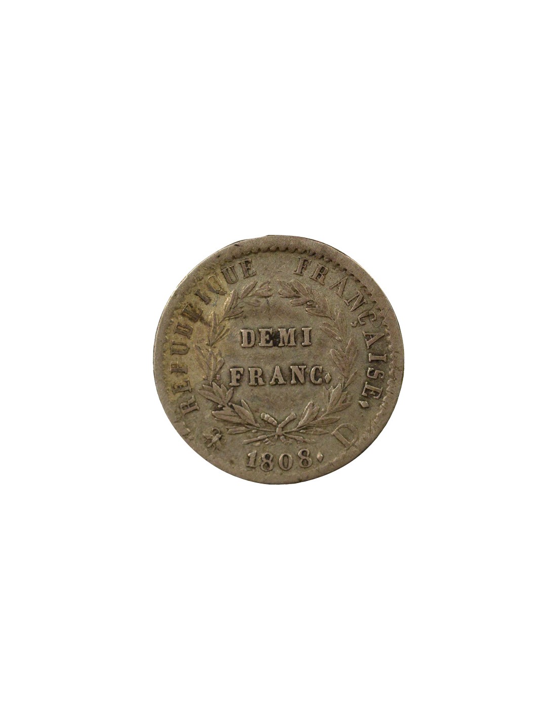 France Napoléon I - 1/2 Franc Argent, Tête laurée, République - 1808 D Lyon