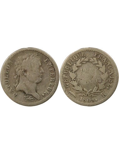 France Napoléon I - 1/2 Franc Argent, Tête laurée, République - 1808 K Bordeaux