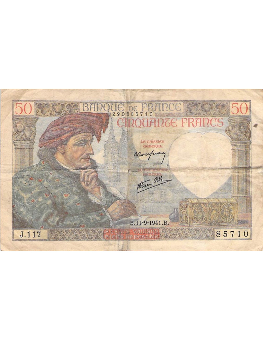 FRANCE, JACQUES COEUR - 50 FRANCS 11/09/1941 - SÉRIE J.117 - TB