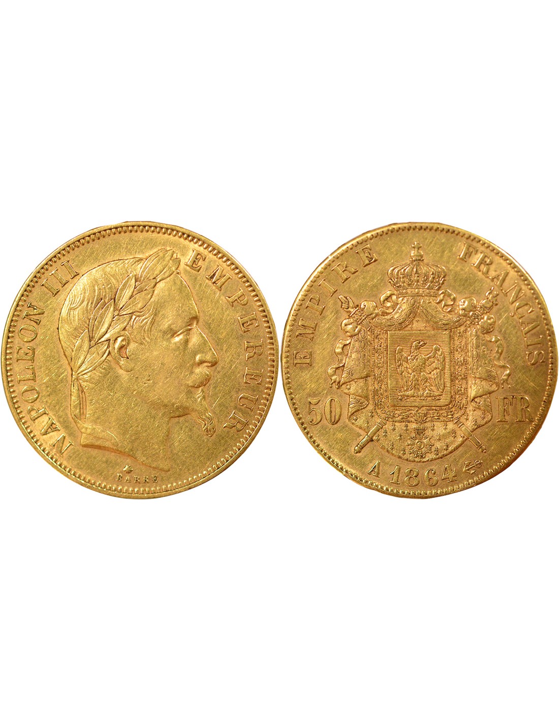 Vendu 50 Francs NAPOLEON III - 50 FRANCS OR 1864 A PARIS A3539 1 050,00 € NAPOLEON III - 50 FRANCS OR 1864 A PARIS View