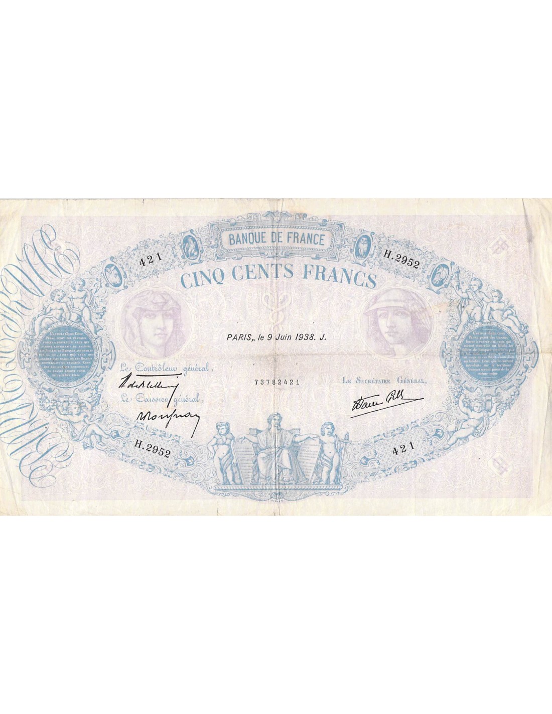 FRANCE - 500 FRANCS BLEU ET ROSE 09/06/1938 - SÉRIE H.2952
