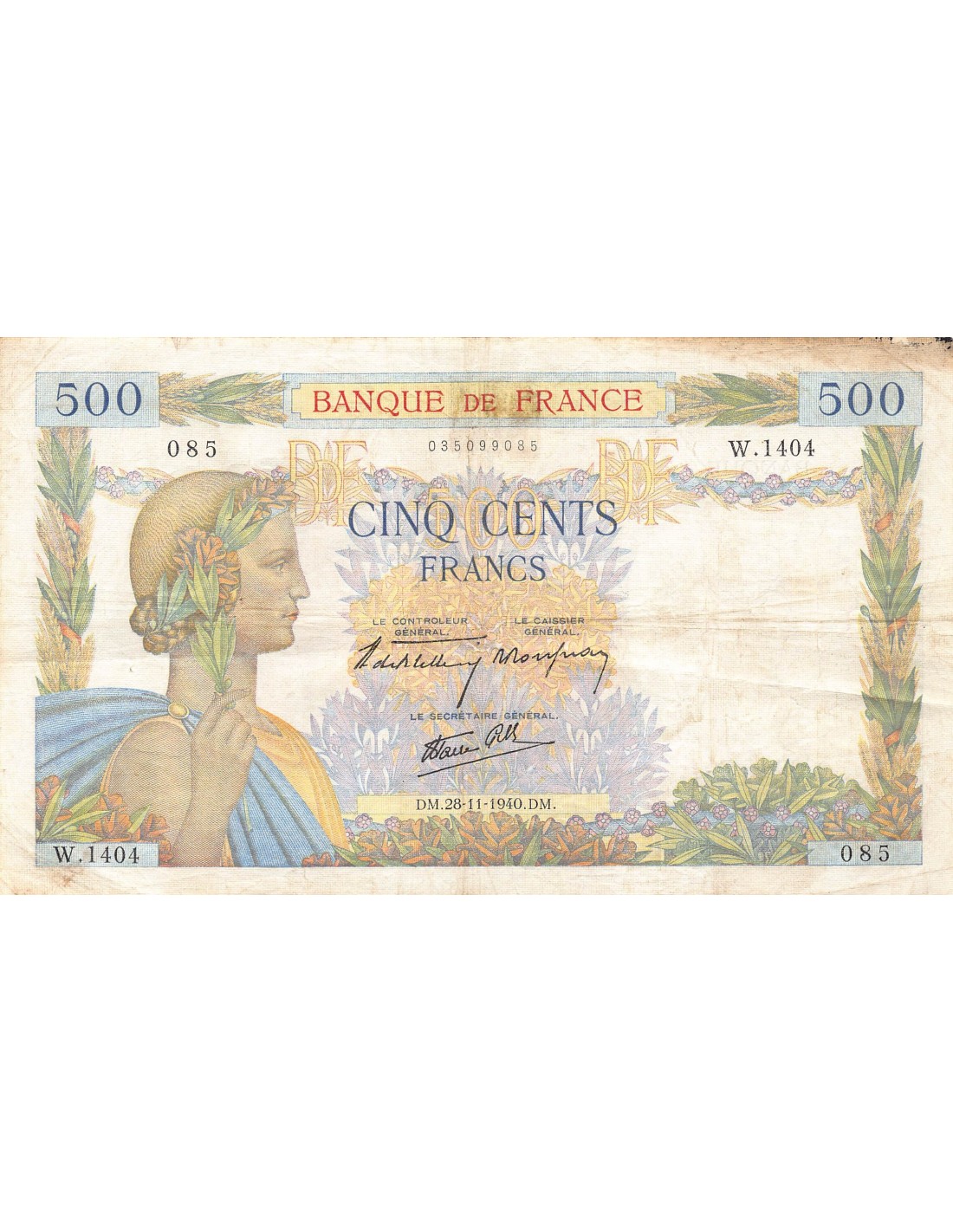 FRANCE, LA PAIX - 500 FRANCS 28/11/1940 - SÉRIE W.1404 - PTTB