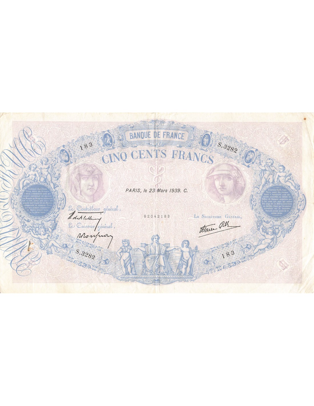 épinglages, plis, salissures, une coupure en marge, un petit trou