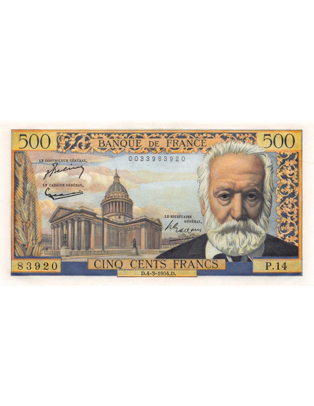 FRANCE, VICTOR HUGO, 500 FRANCS 04.03.1954