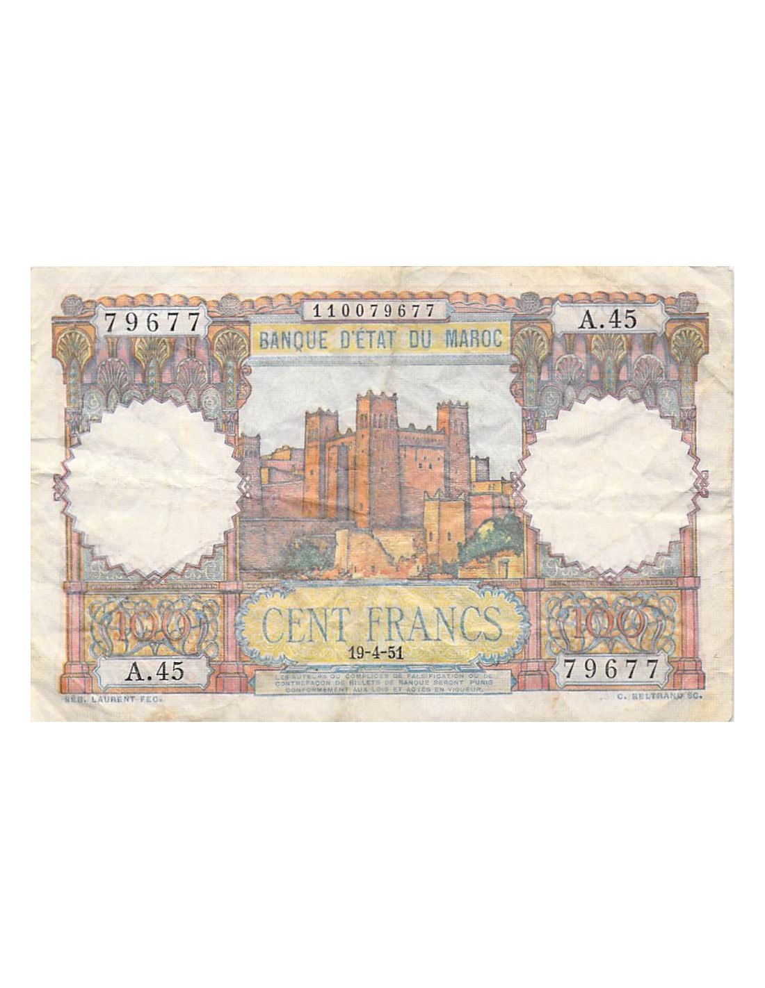 MAROC, BANQUE D'ÉTAT - 100 FRANCS 19/04/1951 - SÉRIE A.45