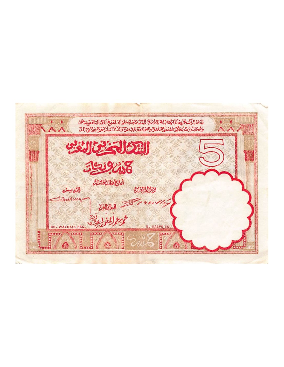 Maroc MAROC BANQUE D'ETAT - 5 FRANCS 01/08/1922 - SÉRIE D.213