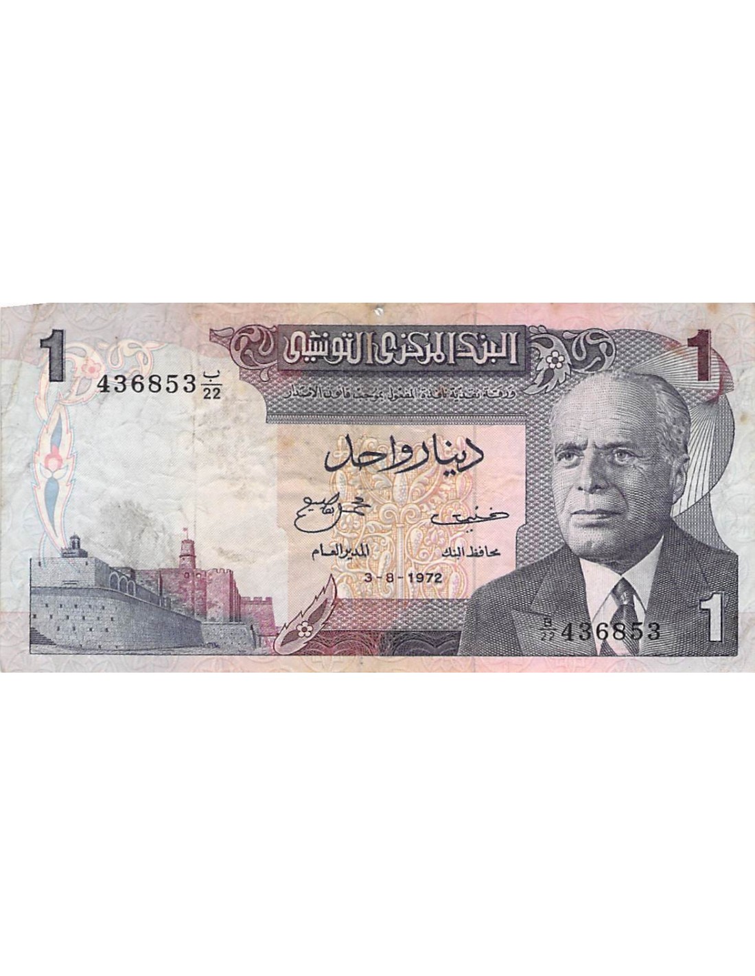 TUNISIE, HABIB BOURGUIBA - 1 DINAR 03/08/1972 - TB+